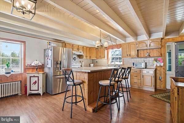 Step back in time and experience the perfect blend of history, charm, and modern comfort at this remarkable 1850s farmhouse set on more than 12 picturesque acres. Nestled among rolling pastures and scenic countryside, this one-of-a-kind property offers a peaceful retreat while still being conveniently located within the desirable Spring-Ford Area School District. The beautifully maintained home features over 3,000 square feet of living space, where historic character meets thoughtful modern updates. A spacious dining addition and a stunning vaulted family room filled with natural light create inviting spaces for both everyday living and entertaining. Inside, you'll find warm architectural details, a charming fireplace, and comfortable living areas designed to capture the timeless character of the home. Outside, the property truly shines. An expansive rear deck overlooks sweeping views of the surrounding hillsides and open fields, offering the perfect setting for morning coffee or evening sunsets. A classic bank barn with updated roof and exterior stands as a centerpiece of the property, complemented by two large 30*40 pole barns-one heated and powered-ideal for a workshop, equipment storage, or small business use. Nature lovers will appreciate the tranquil creek winding through the land, along with a picturesque pond and open pastures perfectly suited for horses, hobby farming, or recreation. Bordering more than 230 acres of preserved land, the setting provides exceptional privacy and endless outdoor opportunities. With historic charm, versatile outbuildings, and breathtaking countryside views, this rare property offers the opportunity to create the lifestyle you've always imagined-whether as a private estate, hobby farm, or peaceful country retreat.