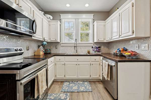 - Dishwasher, Microwave, Oven, Range, Refrigerator, Stainless Steel Appliance(s)