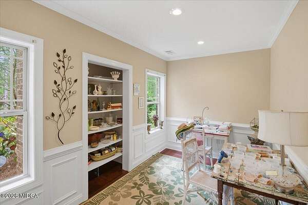 - Attic Storage, Bookcases, Carpeted Floors, Double Vanity, Entrance Foyer 2 Story, Fireplace, Gas Logs, High Ceilings 10' ft Main, High Speed Internet, Pantry, Walk-In Closet(s), Whirlpool Tub, Workshop Area, w/ Connection
