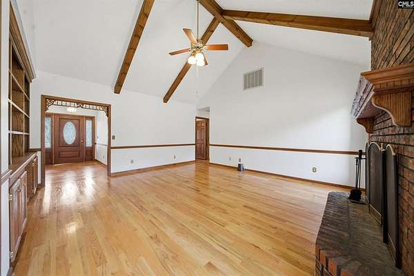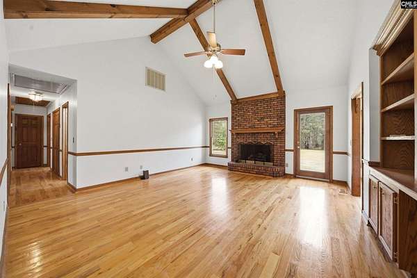 Welcome to a rare opportunity at 111 Plantation Estates Road—where space, versatility, and lifestyle come together on 9.3 beautiful acres. This custom-built brick ranch offers endless possibilities, whether you’re dreaming of homesteading, multi-generational living, or simply enjoying room to roam.The property is partially fenced and features private nature trails, plus access to the gated Wolf Lake—perfect for boating, fishing, and recreation, with water fed directly from the Congaree River.Inside, you’ll find hardwood floors throughout the main level, fresh neutral paint throughout the entire home (including the garage which also features brand new garage doors), and newly installed carpet in the finished room over the garage—ideal for a flex space, office, or guest retreat. The kitchen and bathrooms feature matching granite countertops, updated stainless steel appliances, and an abundance of natural light throughout.The living room is the heart of the home, showcasing vaulted ceilings with exposed beams and a cozy fireplace that ties the space together—creating the perfect forever home feel.The spacious garage easily accommodates multiple vehicles, including trucks, with additional room for storage, hobbies, or even a sitting area. A functional laundry/mudroom with sink adds everyday convenience, while the expansive acreage invites you to create the lifestyle you’ve been dreaming of.If you’ve been searching for privacy, flexibility, and a property that truly does it all—this is the one. Disclaimer: CMLS has not reviewed and, therefore, does not endorse vendors who may appear in listings.