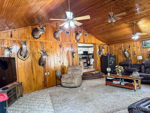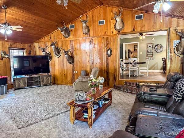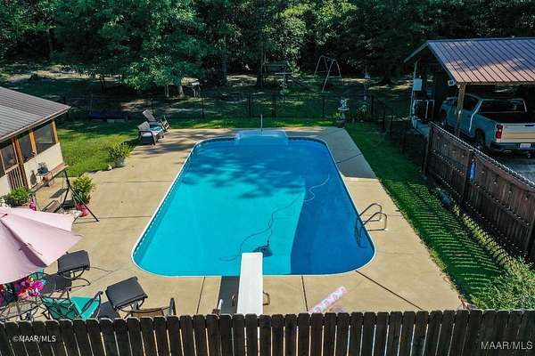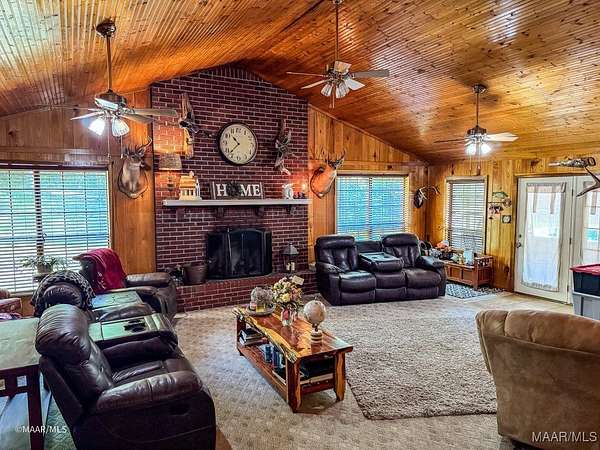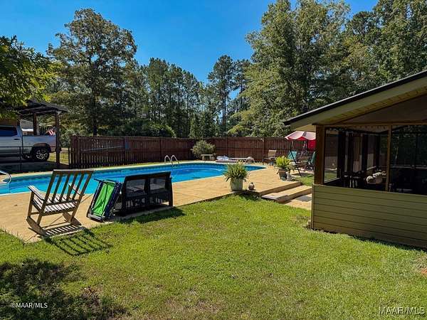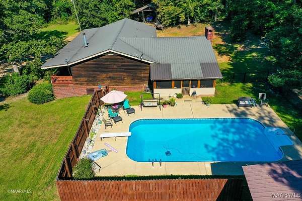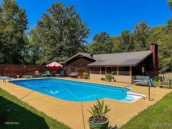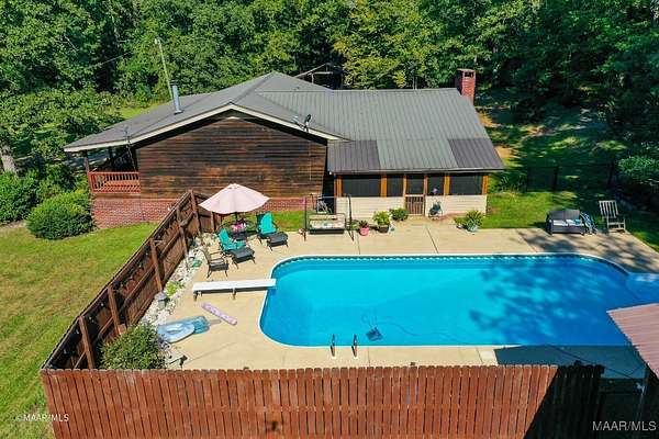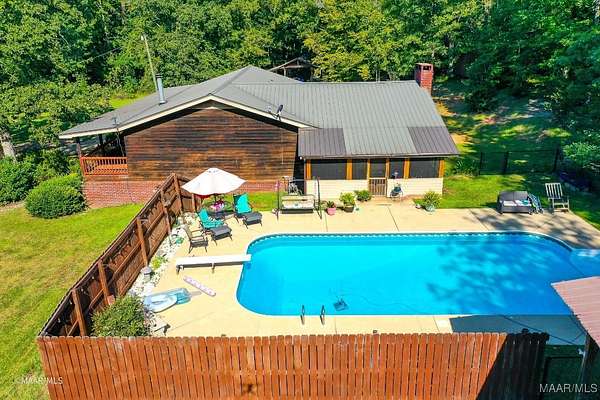3D TOUR! Price DROP! Imagine the life you've always wanted in this 3/2 haven on 2.7+/- acres...with an in-ground salt water pool, Workshop and Skinning Shed. This residence offers a blend of rustic charm and contemporary design elements. The Great Room boasts a striking vaulted wood ceiling and cypress walls, complemented by a prominent brick fireplace and comfortable seating. A second living area with gas log fireplace provides additional space for relaxation or entertainment. The kitchen features sleek white cabinetry, modern appliances, and ample counter space open to the Dining area. Unwind in the generous Primary Bedroom, a true sanctuary featuring a spacious bath with double vanity and walk-in closet. The dedicated Laundry/Mud Room is accessible from the exterior to keep the rest of the home tidy. Split floor plan has 2 more spacious bedrooms, guest bath and ample storage. Step outside to the covered front porch or screened porch at pool side. Envision peaceful mornings or lively gatherings with family & friends. You'll appreciate the additional outdoor amenities: Workshop, shed for your ATVs and Boat -PLUS- a convenient skinning shed that has a concrete floor with drain and on-demand water heater for easy clean up! This home offers the perfect canvas for your aspirations. Located in a picturesque setting with city utilities, this property isn't just a house-it's the beginning of your next chapter. Be sure to click on our 3D Tour! City water, sewer, and trash. Current Annual Property Tax: $763. Listing data is deemed reliable but is not guaranteed accurate. Buyer to verify all details of importance to Buyer during due diligence timeframe, including square footage, acreage, school system, etc. ~~All photos are copyright protected and are the sole property of David & Kathy Brasell. Unauthorized use, distribution and/or copying are prohibited. ~~
