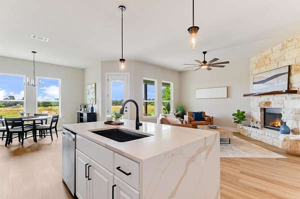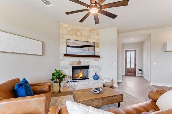 This Bronco Floor plan features 4 bedrooms, a huge open living space with beautiful fireplace, a large driveway, garage door openers, painted finished garage, back patio and front porch to enjoy sunsets, stainless steel appliances, quartz in kitchen and bathrooms, walk-in shower, double vanity, freestanding tub and more! Discover Draper Acres Subdivision - Your Gateway to Tranquil Living Near Liberty Hill! Located just a short drive from Liberty Hill, Draper Acres offers a rare opportunity to own a piece of peaceful Texas countryside in Burnet County. This stunning 61-acre community is thoughtfully subdivided into 18 spacious parcels, giving you plenty of room to move into your dream home. Key Features: * New Roads: Access is easy with a freshly paved asphalt road and a large cul-de-sac for convenience. * Peace of Mind: Protected by a Declaration of Covenants, Conditions, and Restrictions. Why Choose Draper Acres? * Low Taxes: Burnet County boasts a total tax rate of just 1.65%. * Community Benefits: An annual assessment of $250 per lot supports recreation, safety, and the upkeep of common areas through the Property Owners Association. Enjoy country living while staying close to the conveniences of Liberty Hill, known for its charming small-town atmosphere, excellent schools, and growing amenities.