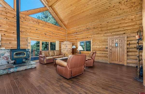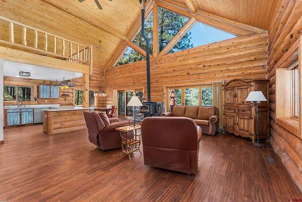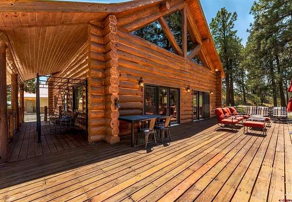 Jeremiah Aukerman, eXp Realty, LLC, C: 970-769-2407, jeremiah.aukerman@exprealty.com, durangohomesales.com: Back on market due to buyers failed loan. Don't miss it this time! 4 Bed | 3 Bath | 21+ Acres | Log Home with Views, Privacy & Upgrades. Welcome to your Colorado retreat—this authentic log home sits on over 21 acres of forested privacy, with commanding views of both the La Plata Mountains and HD Mountains from expansive front and back decks. Located just 15 minutes from Bayfield, 30 minutes from downtown Durango, and under 40 minutes to the La Plata County Airport, you’re close to town while still enjoying the peace and space of mountain living. Since purchasing the property, the sellers have made major improvements including adding a large detached garage with a finished hobby studio. They've also hooked up to a well, supported by an 1,800-gallon cistern for extra water storage.Inside, the home offers 4 bedrooms and 3 full bathrooms plus an office. The main level features a sun-filled great room with a wall of windows, vaulted ceilings, and panoramic mountain views. The kitchen includes stainless steel appliances, highlighted by a Viking Professional 6-burner range, ideal for home chefs. The lower level includes a spacious family room with a pellet stove, a walk-out French door to the outdoors, and a large cedar-lined storage closet. Upstairs you have the master suite and cozy loft sitting area. Outdoors, you'll find mature pine trees, rugged rock outcroppings, and total seclusion. You're just minutes from thousands of acres of San Juan National Forest, with easy access to Vallecito Reservoir, the Pine River, and countless trails for hiking, biking, hunting, and ATV riding. Additional highlights: Updated septic system with 2018 permit, No HOA or covenants. This property offers the rare combination of classic mountain architecture, modern infrastructure, and unbeatable access to Southwest Colorado’s natural playgrounds. Whether you're seeking a year-round residence or a private getaway, 111 S Windy Ridge delivers the freedom and lifestyle you’re looking for. Contact agent directly for your private showing.