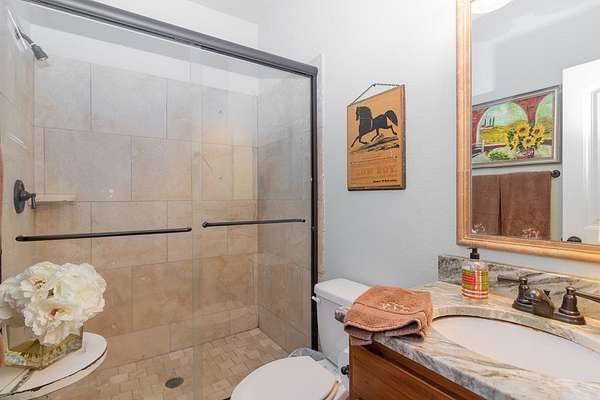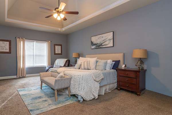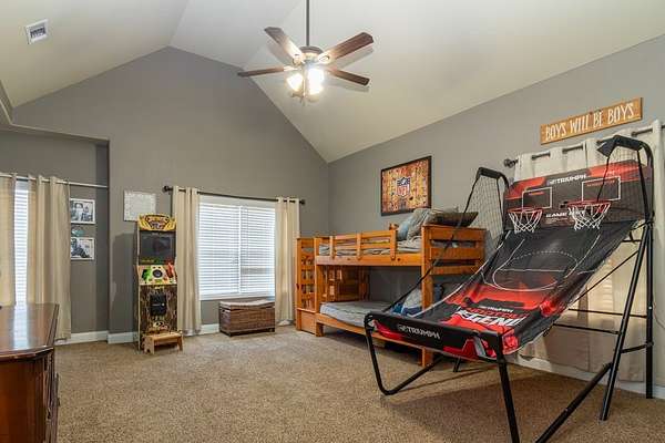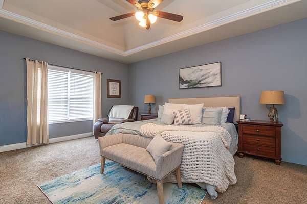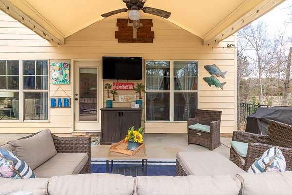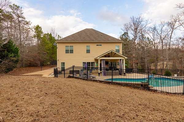 Custom built by Robert Ashley on Almost 2 acres in Harris County, this home delivers quality construction, functional space, and outdoor living that's hard to find in today's market. The property features an in-ground pool and a large gameday porch with TV outlets positioned for easy entertaining and everyday use. Inside, the home offers high-end wood cabinetry and granite throughout, along with high ceilings in the bedrooms and a separate dining room highlighted by coffered ceilings. The layout provides multiple living areas with a natural flow that works for both family life and hosting. The primary suite is located on the main level and includes an oversized walk-in closet with dedicated his-and-her sides. Additional bedrooms offer flexibility for family, guests, or office space. Conveniently located near schools, shopping, and dining while still offering acreage and privacy, this home combines location, construction quality, and lifestyle features in one complete package.