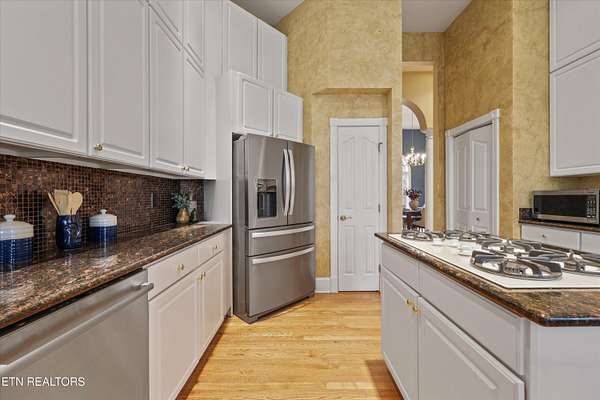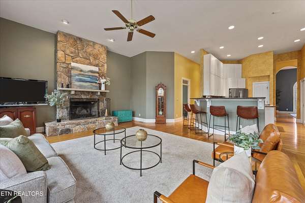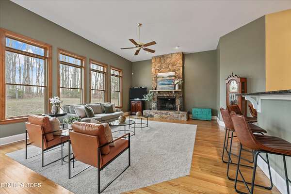 6+ acres, 5 garages and 15 minutes to Aspire Park! 5 min to Sequoyah or Stardust Marinas. Main level has 4 bedrooms all with their own ensuite! Lower level has a mother-in-law suite with bedroom, full bath, kitchenette and living space- with walk-out access. Lower level also has game room, weight room and 2nd lower level full bath, storage room and closet. Mechanical room -downstairs- with second washer/dryer hookup, new, whole-house water filtration system and water softener. Wood-burning fireplace in family room w/ gas log starter. Gas fireplace in primary bedroom. 3-car attached garage. Additional parking in the 2-car, detached garage. The detached garage has great storage in the loft area. Lots of parking options as the driveway is oversized. Water & septic run to detached garage (not connected at present). Propane grill on back deck remains. 1,000 gallon propane tank under ground (next to driveway)- rented from gas company. ADT security system. Freezer & 2nd fridge in garage stay. New 10 year smoke detectors. Co2 detectors.
