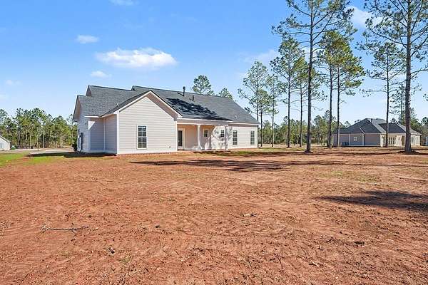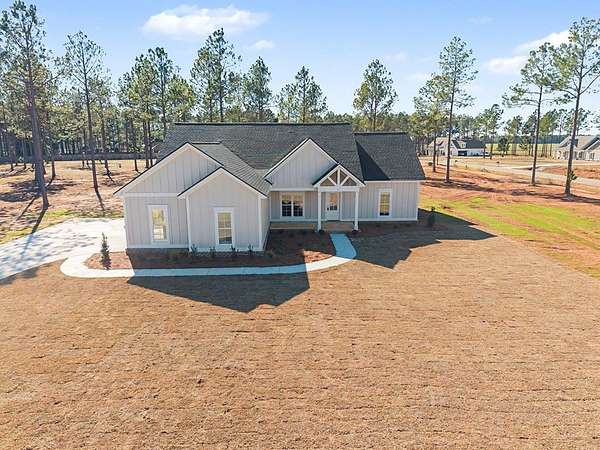 Beautiful Craftsman-style home located in West Lee County's established Brittany Lakes Subdivision. This stunning 4-bedroom, 2-bath residence offers over 2,000 sq ft of living space with a bright, open floor plan designed for today's lifestyle. The spacious family room features gorgeous LVP hardwood flooring, crown molding, and a cozy gas-log fireplace, creating a warm and inviting atmosphere. The kitchen is thoughtfully designed with dark painted island, white parameter cabintry, quartz countertops, stainless steel appliances, a decorative vent hood, and a large walk-in pantry, providing both style and functionality. The private primary suite is generously sized and includes a luxurious bath with a garden tub, separate tiled shower, and double vanities with quartz countertops. Additional bedrooms are nicely sized, and the hall bath also features a double vanity, adding everyday convenience. Built with quality and energy efficiency in mind, this home includes a tankless Rinnai water heater, double-pane windows, extra insulation, low-maintenance HardiePlank siding, and 30-year architectural shingles. Covered front and back porches provide excellent outdoor living space for relaxing or entertaining. All of this is situated on a beautiful 1.5-acre lot in a desirable Lee County neighborhood. This gorgeous new home is almost complete--don't miss your opportunity to make it yours!