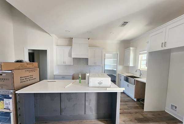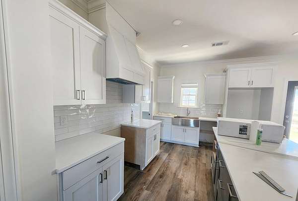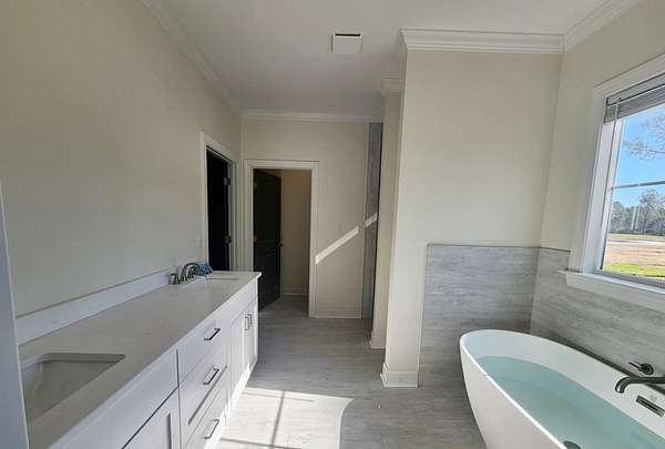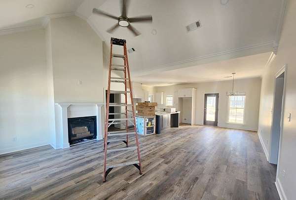 Beautiful Craftsman-style home located in West Lee County's established Brittany Lakes Subdivision. This stunning 4-bedroom, 2-bath residence offers over 2,000 sq ft of living space with a bright, open floor plan designed for today's lifestyle. The spacious family room features gorgeous LVP hardwood flooring, crown molding, and a cozy gas-log fireplace, creating a warm and inviting atmosphere. The kitchen is thoughtfully designed with dark painted island, white parameter cabintry, quartz countertops, stainless steel appliances, a decorative vent hood, and a large walk-in pantry, providing both style and functionality. The private primary suite is generously sized and includes a luxurious bath with a garden tub, separate tiled shower, and double vanities with quartz countertops. Additional bedrooms are nicely sized, and the hall bath also features a double vanity, adding everyday convenience. Built with quality and energy efficiency in mind, this home includes a tankless Rinnai water heater, double-pane windows, extra insulation, low-maintenance HardiePlank siding, and 30-year architectural shingles. Covered front and back porches provide excellent outdoor living space for relaxing or entertaining. All of this is situated on a beautiful 1.5-acre lot in a desirable Lee County neighborhood. This gorgeous new home is almost complete—don't miss your opportunity to make it yours!