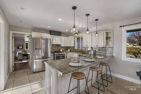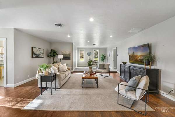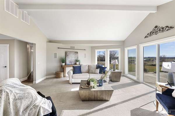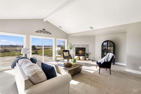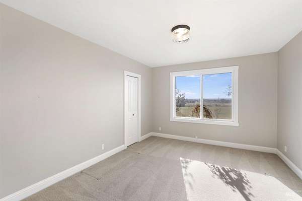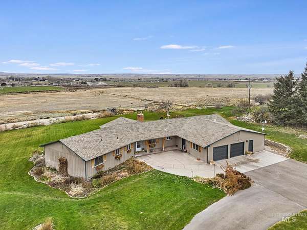 Perched on a butte with breathtaking panoramic views, this rare single-level country home offers space, versatility, and modern upgrades on 5.52 acres including an additional build-able lot. Featuring 4 spacious bedrooms (with potential for a 5th) and a large open-concept layout, this home blends comfort and functionality. The residence includes a private living area with its own entrance, family room, and two bedrooms perfect for multi-generational living or guest quarters. Recent updates include a brand-new roof, new energy-efficient windows, fresh interior paint and all-new carpet. The oversized attached garage easily accommodates two vehicles plus additional storage. A 40x60 shop with a 12' automatic door completes the package - ideal for hobbies, RV storage, or business use.A truly hard-to-find property that combines rural charm with thoughtful modernization. Come see the views, the upgrades, and the opportunity.