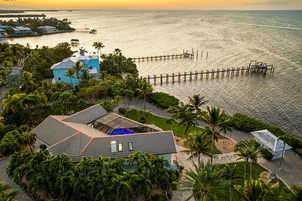 Now offered as 1 package, embrace the RARE opportunity to own 1.75 acres of open water paradise in the prestigious, gated community of Stirrup Key. Over 750' feet of direct, open Gulf frontage, you'll enjoy spectacular sunrises and sunsets from nearly every vantage point, including a charming sunset gazebo overlooking the iconic Seven Mile Bridge in the distance. The custom Mediterranean-style residence captures the essence of resort living with expansive pavered patios, sparkling elevated pool, and spacious lounging areas absolutely perfect for entertaining against a stunning Gulf backdrop. Five protected basin docks provide sheltered boating access in the marina, while terraced tropical gardens cascade toward the water, lined with mature palms and lush landscaping for a serene coastal ambiance. Inside, soaring cathedral ceilings, wood plantation shutters, and an airy great room with real coral fireplace showcase timeless Keys craftsmanship. The split-bedroom layout ensures privacy, with a luxurious master suite featuring dual closets and skylit bath, plus separate guest quarters. Additional highlights include an elevator, 12,000-gallon cistern, huge garage for cars and golf carts, and a large lower-level storage area with workbenches, pool table, and extra laundry facilities. This gated community, with unique architecture, fewer lots, limited rentals and higher quality restrictions help to sustain a premium and private feel. Only minutes from the Marathon Airport, this one-of-a-kind estate combines open-water grandeur with island tranquility, a true Florida Keys sanctuary.