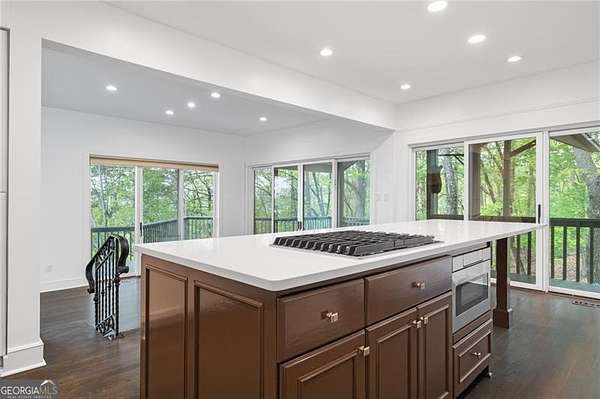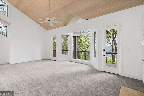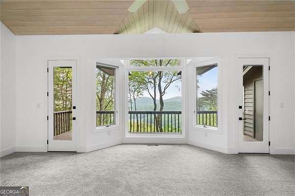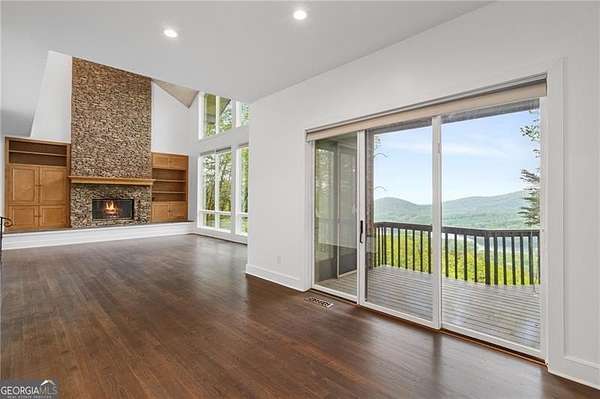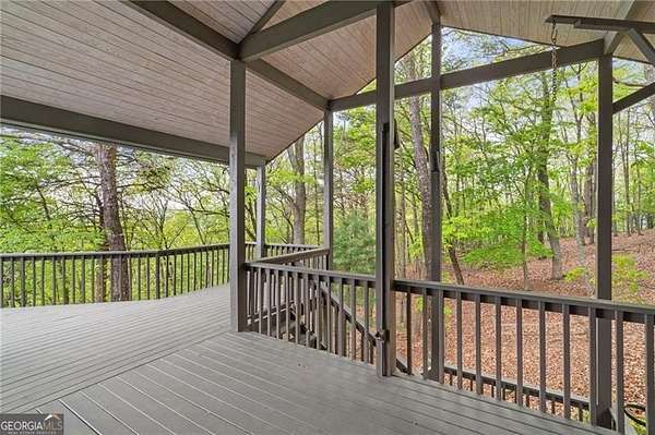 This Franklin Lloyd Wright inspired one owner home is a masterpiece and built well before its time. This 5 BR & 3 1/2 BATH design home is light and bright with a contemporary flair and enjoys incredible panoramic views of Lake Petit and long range mountains from every vantage point. Truly one of the best views in all of Big Canoe and yet just minutes from the North Gate and Wolfscratch Village where Big Canoe's world class amenities are located. This uniquely designed home has undergone several recent renovations including a new kitchen with white quartz countertops and a new mirrored backsplash, all new stainless steel appliances, expanded work island, plus all wood kitchen cabinets repainted and hardware replaced. The expansive Master B/R Suite is located on the main level and has walkout access to the back deck, oversize master closet with built-in shelving, large bay window and a fireplace bordered by two built-in cabinets. Master bath has a large walk-in shower with seamless glass enclosure, jacuzzi tub and a bidet separate of the toilet in water closet. Also on the main level is a spacious sunken living room with newly refinished hardwood floors, dramatic vaulted T&G wood ceilings, floor to ceiling stacked stone fireplace and built-in wood cabinets, dining area and laundry room for your convenience. Upstairs are two oversize bedrooms with a large jack and jill bathroom. The terrace level includes a large great room with Mexican tile floors and a gorgeous stacked stone fireplace, plus 2 bedrooms with a shared full bath, and great storage space. Hardwood floors on the main level have been refinished, carpet in all bedrooms is new, and all the interior walls, baseboards and trim was just recently repainted, covered back deck replaced, and the exterior siding on the back wall was just replaced and repainted. The roof, all 3 HVAC units and both water heaters were also replaced in the last few years for good measure. Gentle sloped driveway with stacked stone accent walls and a flagstone front entry porch. This is a very special custom built home with many unique design features laced throughout. A rare find and a home well worth checking out.