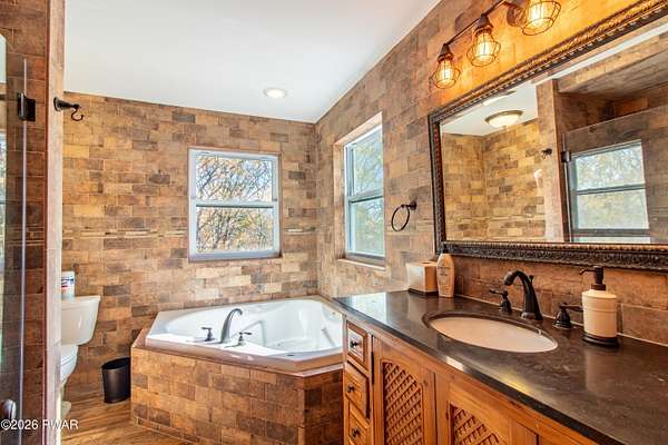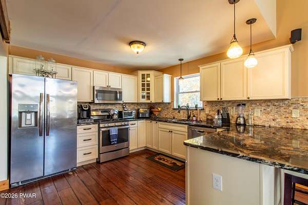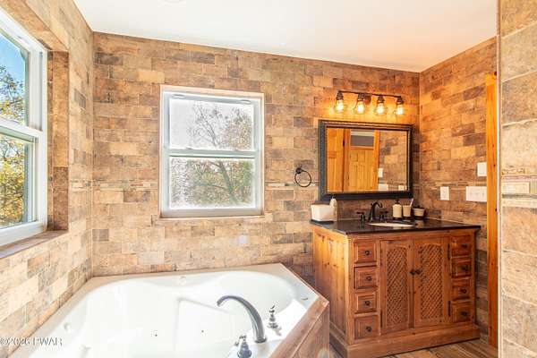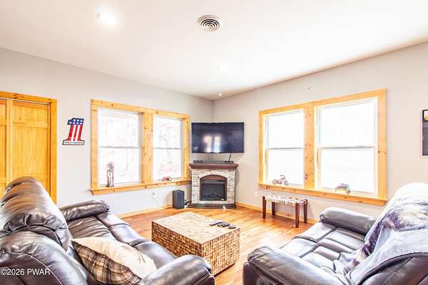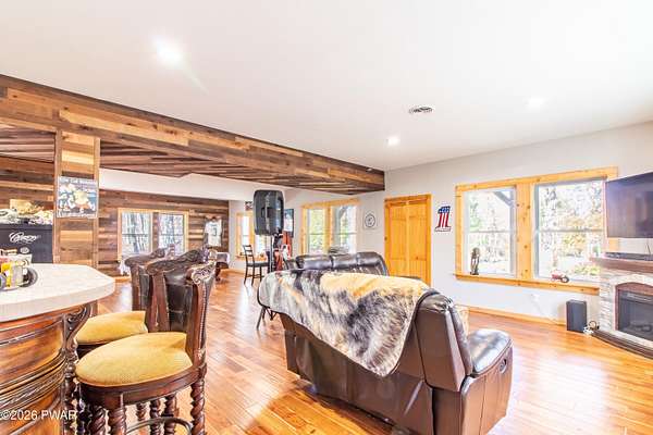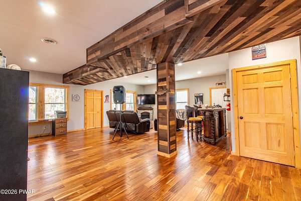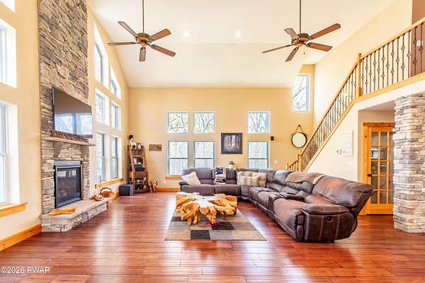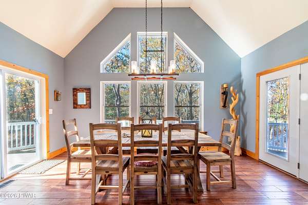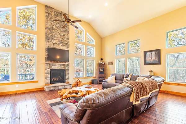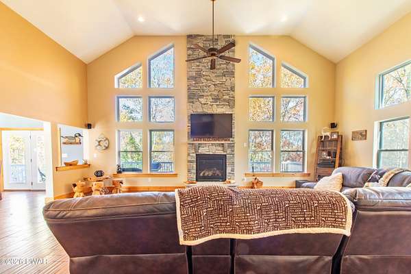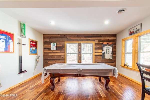 Welcome to your dream retreat in the Poconos! This stunning 4-bedroom, 2.5-bath mountain chalet is perfectly nestled on a private 2-acre lot in the sought-after community of Blue Heron Woods, known for its beautiful homes, peaceful setting, and low HOA dues.Step inside to find cathedral-style ceilings, rich plank hardwood floors, and a bright, open layout that effortlessly blends rustic charm with modern comfort. The spacious master suite feels like a private spa, complete with a Jacuzzi soaking tub, step-in shower, and serene views of the surrounding woods.The finished lower level offers plenty of extra space for a game room, gym, or home theater -- perfect for entertaining or relaxing with family and friends. Outside, the expansive wraparound deck invites you to unwind, host gatherings, or simply enjoy the sounds of nature all around you.Located just minutes from Lake Wallenpaupack and the vibrant town of Hawley, you'll have easy access to boating, dining, shopping, and year-round outdoor adventure -- all while coming home to the peace and privacy of the mountains.