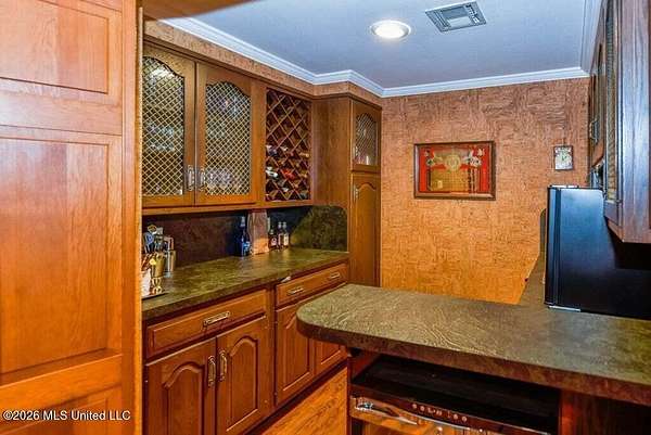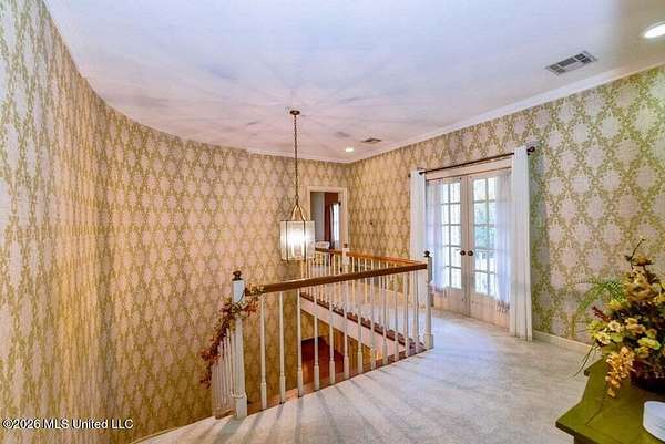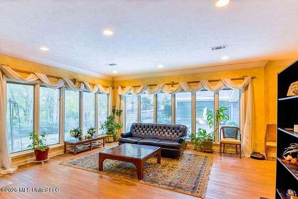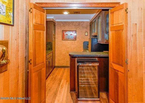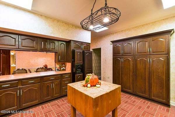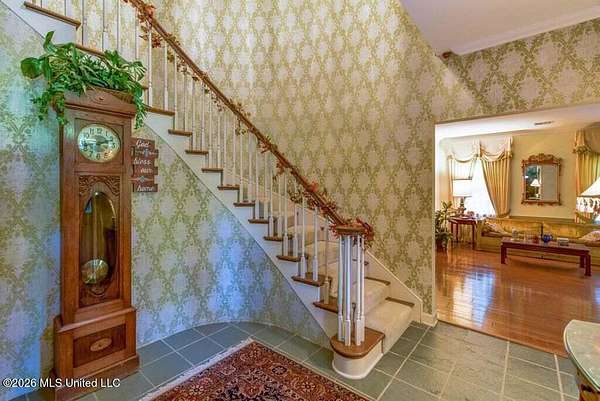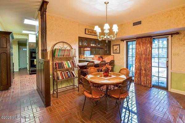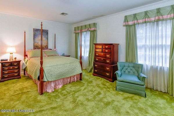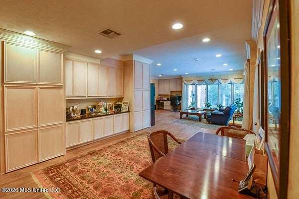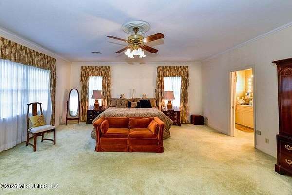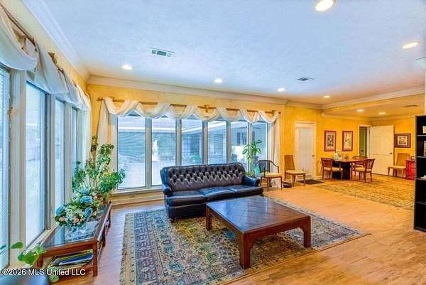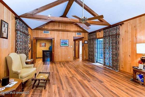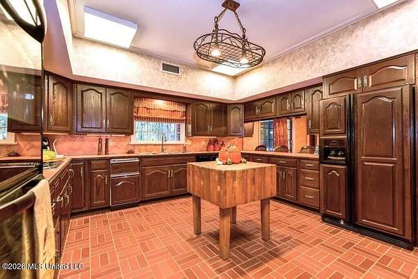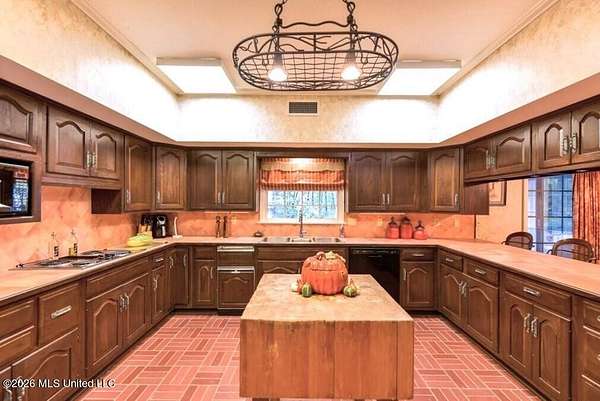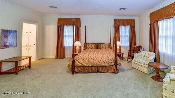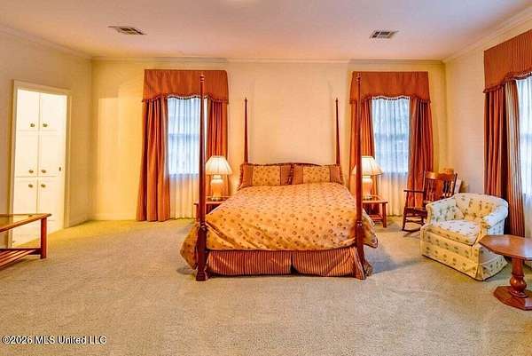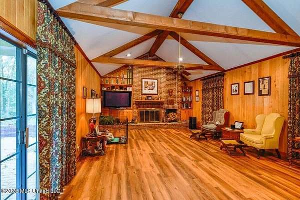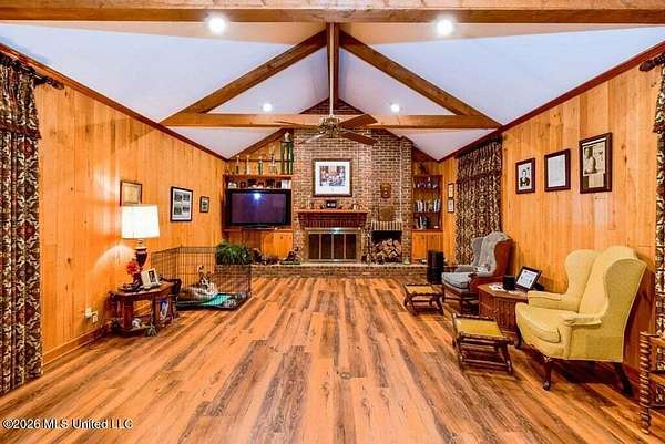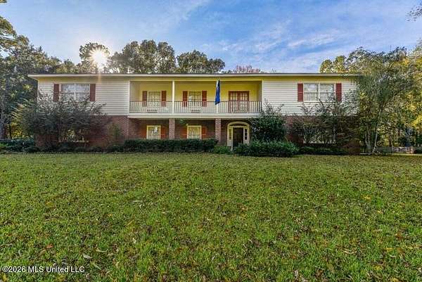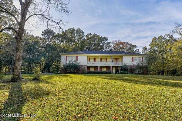 STATELY ESTATE LIVING ON 4.8 ACRES IN WOODHAVEN SUBDIVISION. Experience space, privacy, and timeless appeal in this impressive 2-story home offering approximately 5,842 heated and cooled square feet. This property provides a rare combination of expansive indoor living and serene outdoor surroundings. This home features 5 bedrooms, 4 full baths, and 3 half baths, with a versatile floorplan designed for both everyday living and entertaining. The large kitchen is a true centerpiece, complete with an electric cooktop, double ovens, dishwasher, garbage disposal, refrigerator, ceramic tile countertops, and an abundance of beautifully stained wood cabinetry. A bright breakfast room opens to a spacious brick paver patio with raised planters, perfect for gardening and outdoor gatherings, all overlooking a private backyard. The sunroom featuring built-ins and a convenient half bath, also provides direct access to the patio. The spacious den boasts a vaulted ceiling, wood-burning fireplace, wet bar with ice maker, and additional patio access-ideal for entertaining. Formal living and dining rooms add elegance and flexibility. The main level includes a bedroom and full bath, perfect for guests. Upstairs, the primary suite offers a true retreat with space for a sitting area and a large bath featuring a soaking tub, separate shower, dual vanities, and ample cabinetry. Multiple walk-in closets, including a cedar closet, provides execellent storage throughout. Additional features include, Covered front porch and balcony, large laundry room on main level, architectural roof (installed approximately 2018), three water heaters, four HVAV units (three fairly new), two car garage, attached storage/workshop plus separate outbuilding, irrigation system for front flowerbeds at driveway entrance, security system, floodlight cameras, gutters, and ceiling fans. With its generous square footage, thoughtful design, and beautiful acreage, this property offers a unique opportunity for comfortable living with room to grow. Schedule your private showing today and see all this exceptional home has to offer. Property sold ''as is''. All dates, measurements, lot size, and year built may be verified by buyer.