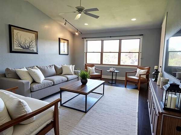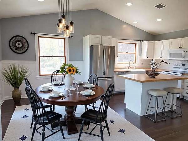 - Built in Microwave, Cathedral Ceilings, Ceiling Fans, Deck, Garbage Disposal