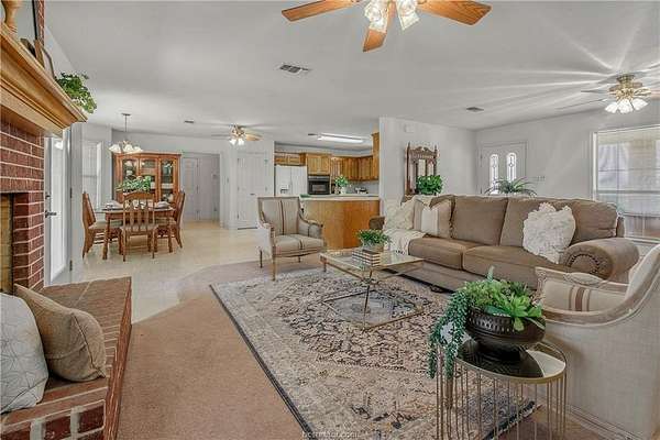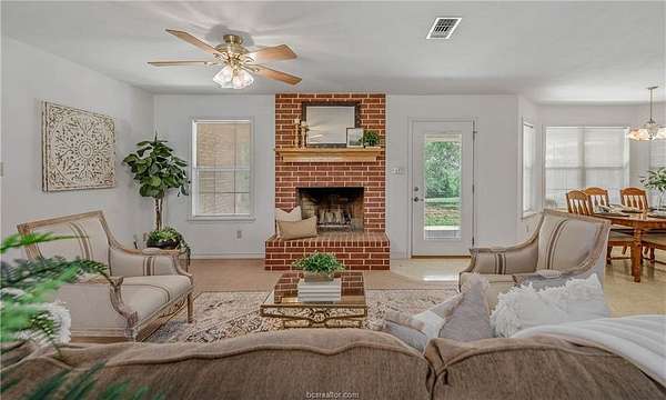 A tree-lined private, long driveway welcomes you home to this serene 2.5-acre retreat, where open skies, space to roam, and thoughtful design offer the peaceful lifestyle you've been craving. A charming covered front porch sets the tone for relaxed living, leading into a sprawling 2,300+ square foot single-story home that combines comfort, function, and room to grow. Step inside to an open-concept living area anchored by a floor-to-ceiling brick fireplace, ideal for cozy evenings or lively gatherings. The adjoining kitchen and dining space offer ample room to cook, connect, and entertain-whether it's a quiet breakfast or a holiday dinner. The expansive primary suite is your private escape, featuring a large walk-in closet, dual vanities, soaking tub, and separate shower. Two additional bedrooms, a full bath, and a half bath provide flexibility for guests or a home office. Outdoors, the property truly shines. A large covered patio invites you to unwind and enjoy the view, while a three-car attached garage, detached carport, and three storage sheds offer plenty of room for tools, toys, or equipment. A dedicated workshop makes space for projects and passions, and there's still ample land left for gardening, animals, or play. Blending country freedom with everyday ease, this home offers the lifestyle you've imagined-just a scenic drive away.