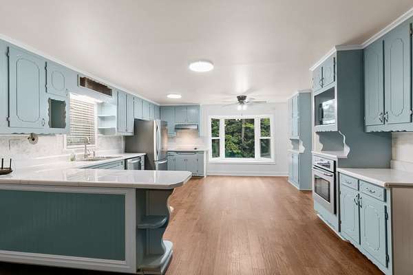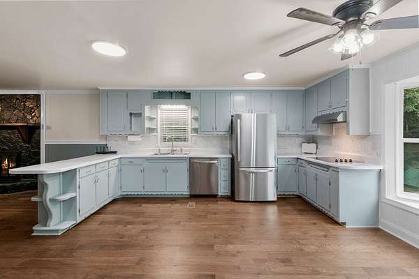 - Built-In Electric Range, Dishwasher, Electric Oven, Microwave, Refrigerator, Stainless Steel Appliance(s)