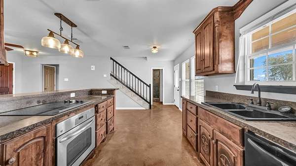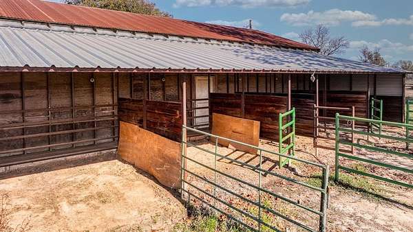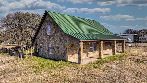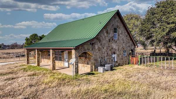 Experience true peace and privacy on your own ranchette. Set on 6.988 secluded acres with a pond, this property is perfectly equipped for your chickens, horses, and country lifestyle. Thoughtfully improved, it features a 1,900+- SF workshop, a barn with four run-ins, and a lighted, fully piped roping arena framed by a stunning backdrop of mature live oak trees. The land is fenced and cross-fenced with top rail and cedar staves, and water spigots are conveniently located throughout the pastures. An 800+- SF framed structure--already outfitted with water and electricity--is ready to become a guest home, office, or bunkhouse. The property is also well-capable and positioned outside city limits with an existing AG exemption in place. The charming all-stone home with a metal roof offers the perfect blend of coziness and character. Sip your morning coffee on the peaceful front porch, then unwind in the evening with a glass of wine on the back porch overlooking the wide-open pasture after a night of roping with friends. Inside, the warm, inviting kitchen and family room flow seamlessly together and lead to the primary suite, complete with its own ensuite bathroom featuring a classic claw-foot tub. Upstairs, you'll find two generously sized bedrooms full of natural light and rustic charm. A property filled with character, functionality, and the quiet beauty of country living--you won't want to leave.