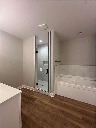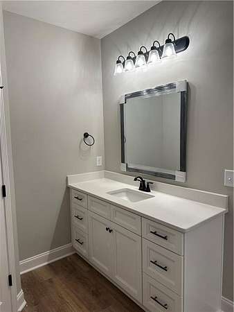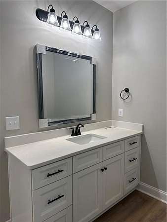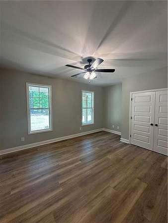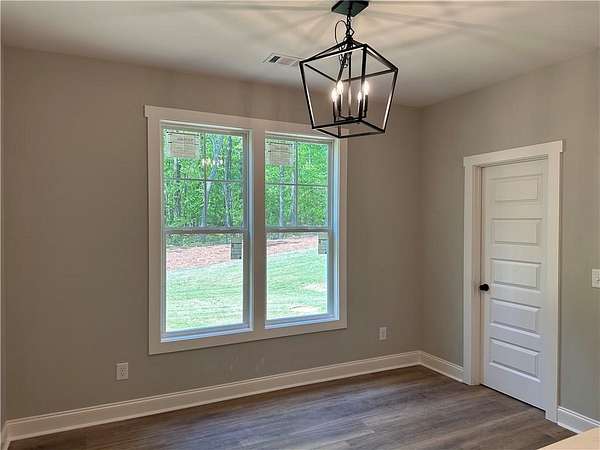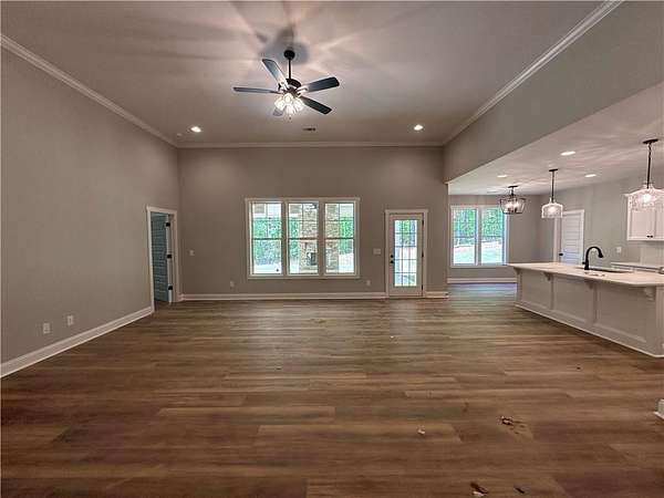 If you're looking for a brand new, one-level home on a large lot near the lake, then welcome home! Situated on 1.6 acres and just completed. Large central living room with split bedroom floor plan. Open kitchen with a Quartz-topped island with seating, sunny breakfast room, lots of counter space and stainless steel appliances. Inviting primary suite includes a spacious bath with separate closets, Quartz double vanities, a soaking tub and separate shower. Three additional bedrooms complete the living spaces in this one-level home. Rear covered porch just off the kitchen with a stone woodburning fireplace. LVP flooring, Quartz countertops and matte black lighting & plumbing fixtures throughout. All electric home with blown insulation is energy efficient. One-year termite bond included. Plans and specs subject to change without notice at builder's discretion