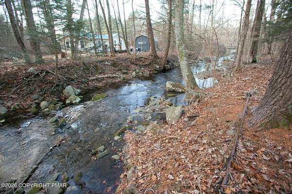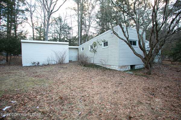 Est $1,216/moTwo bedroom, One bath ranch with roughly 135 feet of stream frontage of the Pine Mountain Run, a tributary to the Brodhead Creek. Extra lot totaling about 1.8 acres. The land is level and the extra lot could make a nice garden with lots of sunlight. This property is in East Stroudsburg School District. It needs some TLC to make this place your own and has a spacious family room with a fireplace and a fireplace in the living room. There's a 16 x 10 three season room with a flagstone floor. A large garage to keep your car out of the weather or to store your toys. Close to shopping, restaurants, lots of outdoor recreation, state forests, state game lands, only several miles to the Delaware Water Gap National Recreation Area.