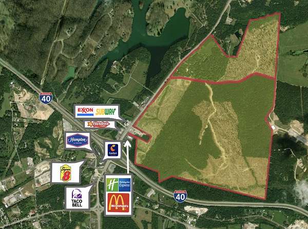 This prime development site is located at the NW corner of interstate 40 and Peavine Rd at exit 322. There multiple contiguous properties available totaling 485+/- acres and the owner is willing to subdivide and numerous property configurations and acreage totals are available. The combined parcels offer approximately 2,057' frontage along Peavine Rd, and 4,696+/- feet visibility along I-40 as well as frontage along both sides of Albert Frye Rd totaling over 1.3 miles. The site(s) are ideally suited for multiple uses to include commercial, retail, medical, residential and multifamily development. Cumberland County is one of the fastest growing counties in TN and is known as the Golf Capital of Tennessee and is home to the new Flatrock Motor Club. Additionally, there are no state income taxes. Water, electric, gas and sewer are to the site. AADT counts are in excess of 42,000 vpd at the I-40/Peavine Rd exit.