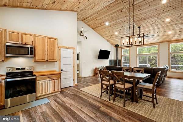 Recently built barndominium that is ready for the next owners. There is nothing more to do here than bring your personal items and start enjoying the tranquility of 1110 Reymann Drive. Property features 25.57 expansive acres of serene land with gorgeous pine trees and huge boulders allowing exploration of natures beauty. Custom built 2200 square foot barndominium with sturdy metal siding and roof built in 2024 featuring 3 bedrooms and 2.5 bathrooms. Home located in the gated area of River Ridge which provides trash removal from dedicated trash room at entrance of community, snow removal of roads, and road maintenance. Built with energy efficiency in mind with closed cell spray foam insulation on all exterior walls, roof, and underside of floors. Expansive living space with soaring wood cathedral ceilings, freestanding wood stove, dining area and full kitchen with hickory cabinets and butcher block counter tops, pantry and LVP flooring throughout. Generous sized primary bedroom and ensuite bathroom with oversized separate shower, deep soaking freestanding bath tub, vanity with double sinks and spacious walk in closet. Two additional well sized bedrooms and full bath complete the sleeping areas. Easy access to mud room from interior and exterior with build in cabinetry for additional storage, washer dryer, and half bath with deep utility tub. Home was built for comfort with tankless propane hot water heater for endless hot water, water conditioning system (owned), 500 gallon propane tank (leased) and whole house Generac generator. Additional oversized storage room and closets allow for all of your storage needs. Entrance to attached garage through storage room along with expansive stone driveway allows for plenty of guests to visit. Enjoy the great outdoors on the rear porch with attached screened in porch with trex decking and table and chairs that convey. The home and property were designed with ease of use and maintenance in mind so you can relax and enjoy. Have an RV? There is an RV parking area located on the property with a dedicated electric service. Property is located one lot from the end of the road for additional privacy. Whether you are looking for a full time residence, or weekend getaway, come see what 1110 Reymann Drive in Wild and Wonderful West Virginia has to offer! Riding lawn mower, golf cart, and most furnishing convey (furnishings may differ from that in photos) as is. Owner has a real estate license in MD.