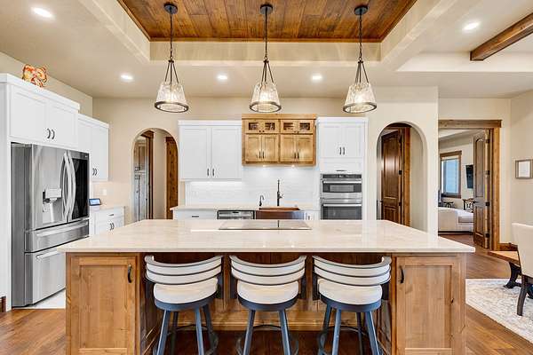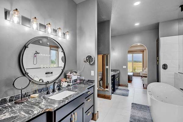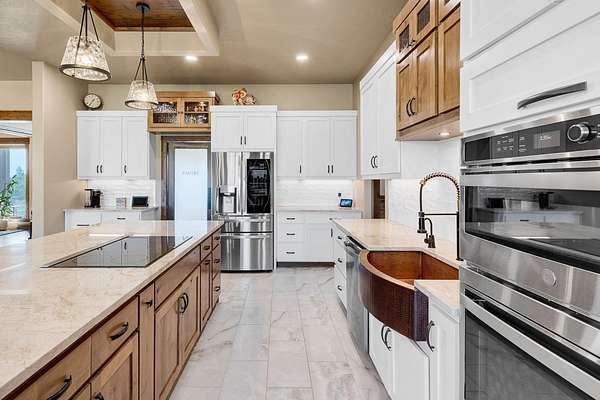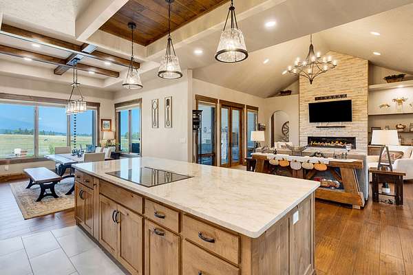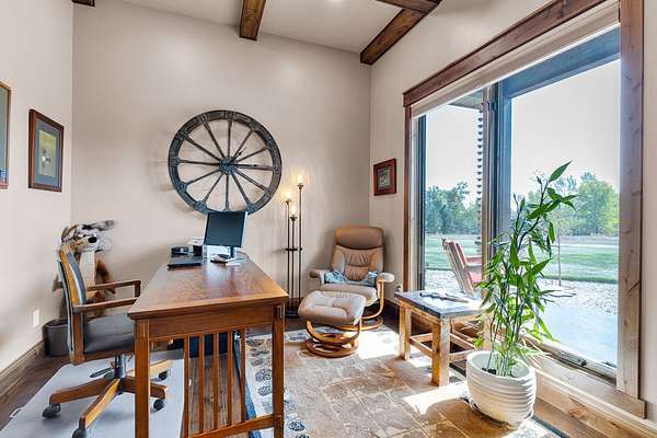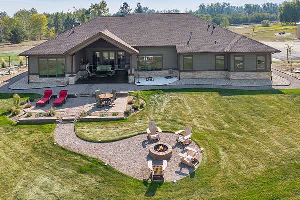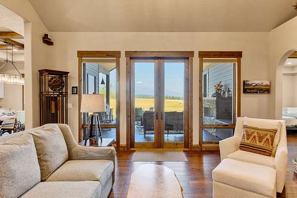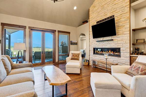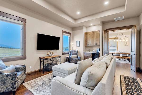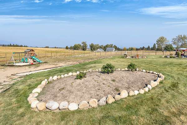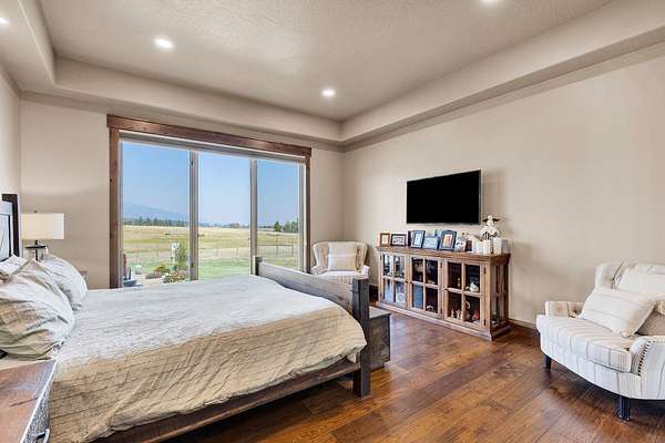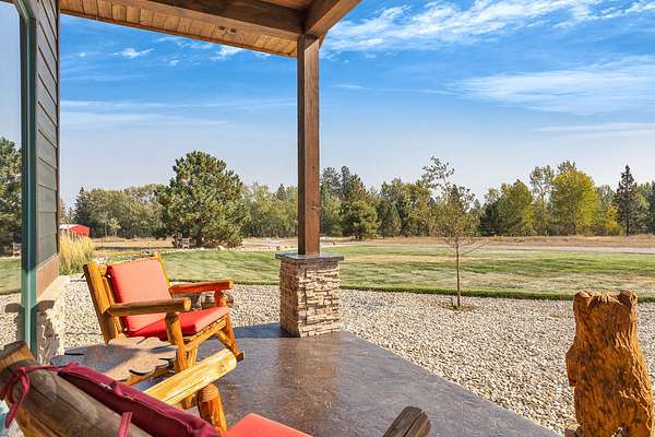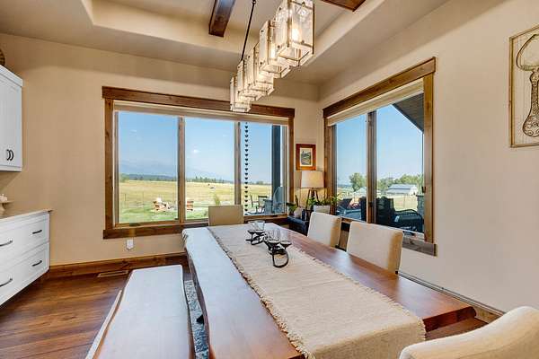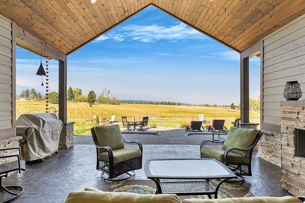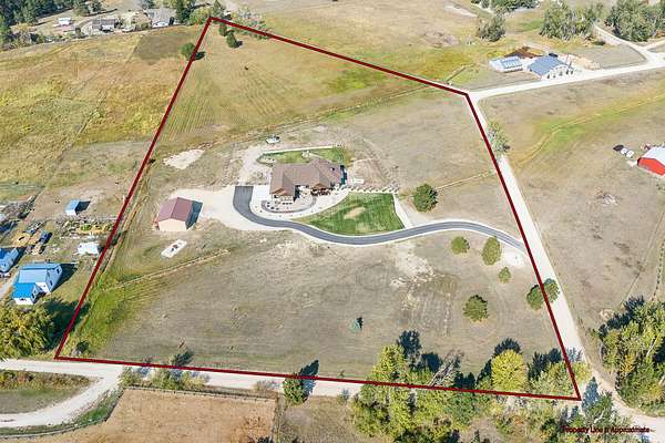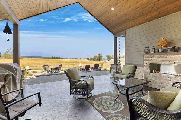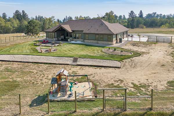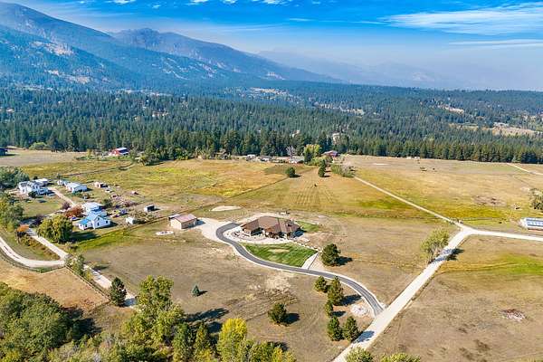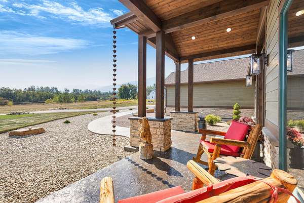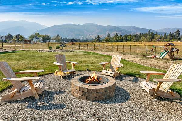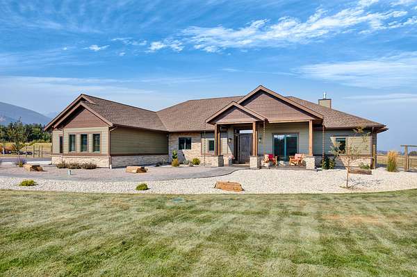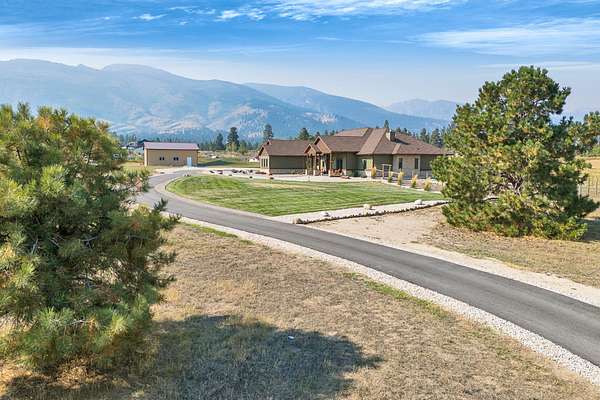 Tucked at the base of the Bitterroot Mountains, this 2023 custom home offers 2,943 Sq. Ft. of refined living on 8.45 acres. Nearly floor-to-ceiling windows fill the open floor plan with light and frame-sweeping valley views. Designed for both elegance and comfort, the home features 3 spacious bedrooms each with en-suite bathrooms, plus a half bathroom, custom finishes, a walk-in pantry, and a striking stone, gas fireplace. The primary suite includes a soaking tub, walk-in shower, and generous walk-in closet. Outdoor living shines with a covered patio, fire pit, underground sprinklers and irrigation rights from Mill Creek. Additional highlights include a 3-car garage, 30x35 shop with 80-amp power, and a 3-zone electric heating/cooling system. Located on Hamilton's west side, this property blends privacy, acreage and luxury with unmatched mountain views, offering a rare opportunity to own a true Montana lifestyle retreat.