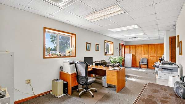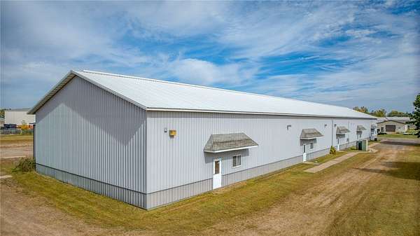 Many possibilities with this 18,460 SF industrial/manufacturing building in Chetek. The property includes a 12,704 SF main building with a 576 SF connecting link leading to a 5,180 SF cold storage warehouse. Approximately 1,500 SF of finished office and reception space is located within the main building, complete with two sets of restrooms. Features include 15'+ ceiling height, 5" concrete floor, natural gas Cryovac heaters in the warehouse, and forced air with air conditioning in the offices. The building is equipped with 3,000 amp switch gear and breakers, plus four overhead doors. Situated on a large 2.19-acre city-improved lot, this property offers excellent functionality and space for a wide range of uses.