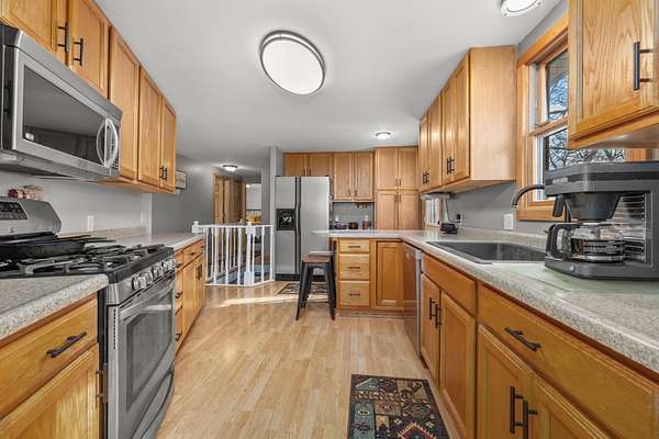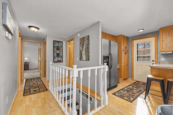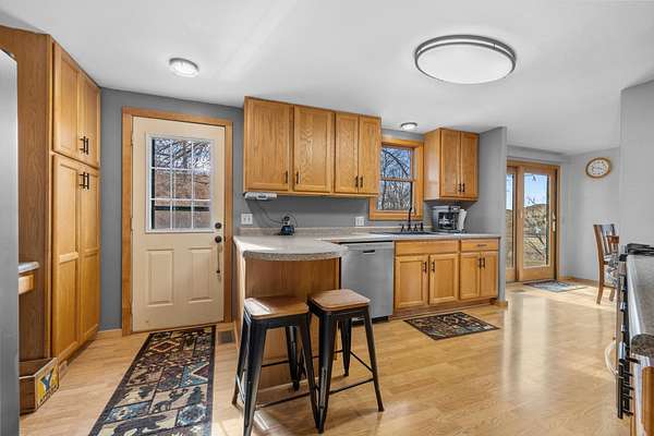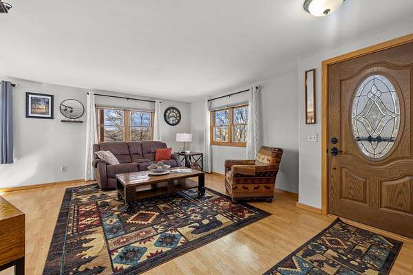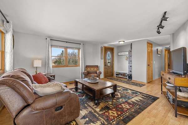 Discover the perfect blend of comfort and country living with this beautiful wood-sided (log-style) home situated on a spacious 5.04-acre property. Inside, you’ll find a warm and inviting living room that flows seamlessly into the dining area and kitchen. The kitchen includes a full appliance package with a stainless steel refrigerator, gas range, dishwasher, and micro-hood. The open layout offers generous living space, natural wood accents, and abundant windows that fill the home with natural light. This well-maintained ranch-style home features three bedrooms on the main level, including a primary bedroom with a private, updated ¾ bath. Two additional bedrooms and a full bathroom complete the main floor. The lower level offers a cozy additional living space, laundry area, plenty of storage (newer water heater & furnace) and a mudroom with access to the attached two-stall garage, providing both convenience and functionality. Outside, enjoy the peace and privacy of wide-open views, mature trees, and opportunities for wildlife watching. The 5.04-acre property provides ample space for gardens, hobbies, or future outbuildings. Whether you’re looking for a quiet retreat or room to grow, this property offers the best of country living while still being just a short drive from the amenities of Minot. Schedule your showing today!
