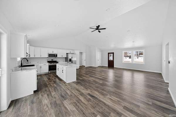 Est $1,966/moDiscover your dream home, BRAND NEW located in South Shore Green. This floor plan offers 1600 sq ft of well-designed living space, featuring 3 bedrooms and 2 bathrooms. Features: Open-concept main living area with vaulted ceiling and plenty of natural lighting. Beautiful kitchen with an island and breakfast bar, plenty of storage, stainless steel appliance package. Primary suite with private bath w/ lighted mirror and large walk-in closet. Property is located on 1.925 ACRES across from the brand-new pickle ball courts. Partial wooded lot provides plenty of room for gardening and outdoor recreation. Yard will have final grade, topsoil, and yard planted this spring when weather permitting.