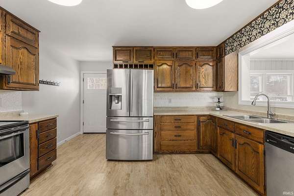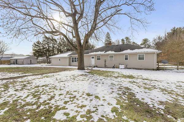 Set on 1.79 acres in the highly sought-after Penn-Harris-Madison School Corporation, this beautifully maintained ranch offers the perfect blend of space, privacy, and versatility. A welcoming breezeway provides an ideal flex space for a home office, dining area, or cozy sitting room. The spacious eat-in kitchen features abundant cabinetry, an oversized walk-in pantry, and all appliances included, making it both functional and inviting. The living room is filled with natural light from the large picture window and showcases a stunning limestone fireplace along with a charming built-in cubby, perfect for displaying family photos, seasonal décor, or your own personal touch.The primary suite serves as a peaceful retreat with a soaking tub, separate shower, and dual vanity areas. Two additional bedrooms and a well-appointed hall bathroom feature excellent storage, including a built-in vanity area ideal for getting ready each day. The oversized attached two-car garage plus an additional three-car detached garage provide incredible space for vehicles, hobbies, storage, or workshop needs.Step outside to a private, fully fenced backyard surrounded by trees, while the front and side yards offer additional space to enjoy, entertain, or simply take in the peaceful setting. Additional outbuildings provide even more possibilities for a workshop, hobby space, extra storage, or recreational use, and a separate fenced area is perfect for animals, gardening, or other outdoor uses. This property offers the space, flexibility, and functionality of country living while remaining close to everyday conveniences.