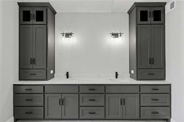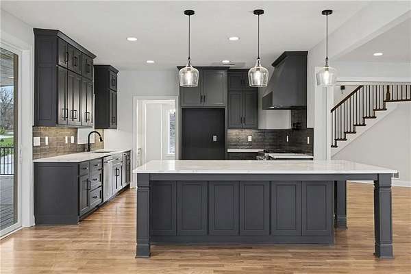- Custom Cabinets, Kitchen Island, Pantry, Vaulted Ceiling(s), Walk-In Closet(s), Wet Bar