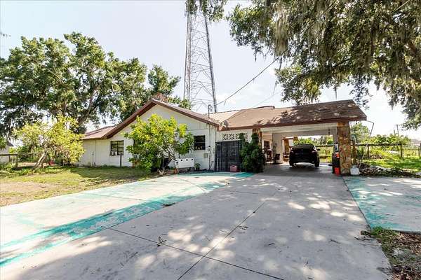 Welcome to this rare 2-acre property with endless potential, located in a prime area of Hillsborough County! This unique offering includes a single-family home with a 1-car attached carport and a detached 2-car garage/storage building--ideal for car enthusiasts, contractors, or anyone needing extra space. Zoned Agricultural Residential (AR) with NO HOA, NO CDD, and NO restrictions, the land offers unmatched freedom--bring your RVs, boats, trucks, build your dream setup, or live off-grid. The property includes space for construction storage, greenhouse potential, a private well, septic system, and access to public utilities directly in front of the home. Boasting over 160 feet of road frontage and easy access to US 98, US 301, I-4, and I-75, as well as proximity to Tampa, Sun City, Brandon, and Wesley Chapel, this is a strategic and highly desirable location. (Note: Public records show a 9.5-acre lot; however, the lot will be subdivided, and 2 acres will be dedicated to this sale along with the house, seller is willing to sell more land for an extra negotiable price.). Don't miss this exceptional opportunity--schedule your private showing today!
