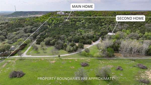 From E Hubbard, travel north on FM 1821. Turn left on NE 11th Street. Turn right at Brazos drive into black gated entrance. Take a left on the driveway and it will take you up the hill to main home. The driveway headed straight from the gate will take you to the second home.