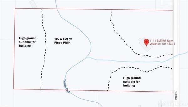 Single family or parcel off for 3+ additional home sites: 15 Acres overlooking Tom's Creek in New Lebanon. Is it time to build your dream home? Offering a mix of privacy and multiple housing sites with ingress/egress off Bull Road. Stop on by and park on the gravel drive leading to space for your new home with potential for a walk out basement or cross Tom's creek for additional home sites. Electic on Bull Road, well-septic per home to be drafted by new owner and developer. See aerial views and video. Barn-o-minium, Custom Home or vacation home with great hunting spaces. Final contract to and approval by Jackson Township, Montgomery County. Call for more information. See schematic on attached documents for the options with topography, tranquil streams & natural wildlife. It's gorgeous and serene just minutes to I35 or downtown Farmersville.