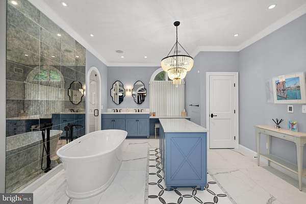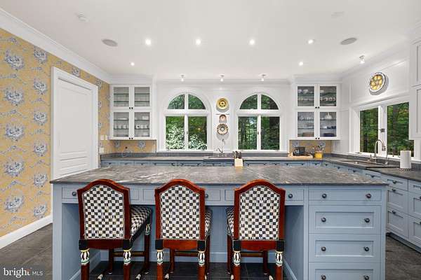 La Maison, with its private two acre setting, motor court driveway and generously-proportioned rooms, is an ideal residence for grand entertaining and everyday living. Located next to McLean's Gold Coast, this home features a light-filled layout, designer fixtures and finishes and numerous renovated and upgraded spaces. Flanked by the living room and music room, a dramatic two-story foyer welcomes guests inside. Through the music room, there is an embassy-sized dining room that leads to the gourmet kitchen with a large island, soapstone counters and top-tier appliances. Off of the kitchen, there is a cozy breakfast room that opens to the two-story family room with elegant built-ins and French doors leading to the expansive rear patio (expanded and renovated in 2019) with a fireplace, waterfall pond and an outdoor kitchen. An arched hallway leads to a powder room and the main-level primary suite. A true retreat, it offers a bedroom with arched built-ins, a refined walk-in closet and a fully-renovated primary bath (2021-2022) with dual sinks, a vessel bathtub and an oversized shower. Upstairs, there are four bedroom suites, each with their own fully-renovated bathrooms (2021-2022) and generously-sized closets. The lower level has been completely renovated (2021-2022) with an expansive recreation room opening to a wet bar and billiards area, with an adjacent and light-filled exercise room. There is also a hidden playroom concealed behind bookshelves, a sixth bedroom suite with a beautiful bathroom with dual sinks, and a gaming closet. A laundry room with two sets of washers and dryers, ample finished storage spaces and a mudroom with access to the attached two-car garage with a large unfinished storage room complete this level.