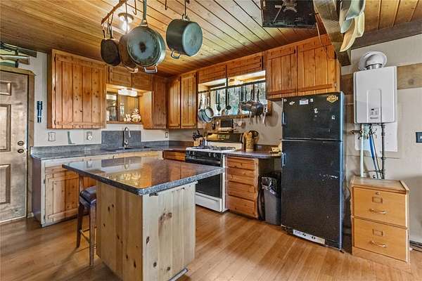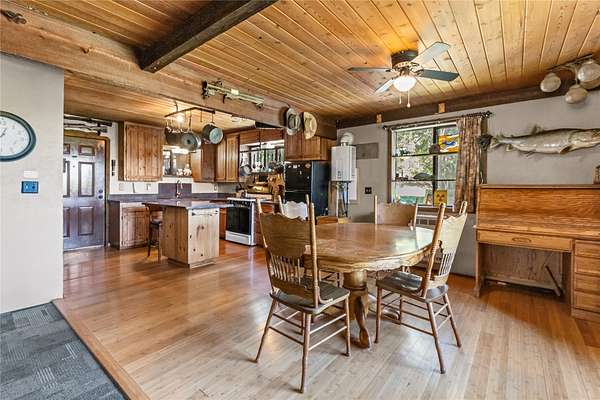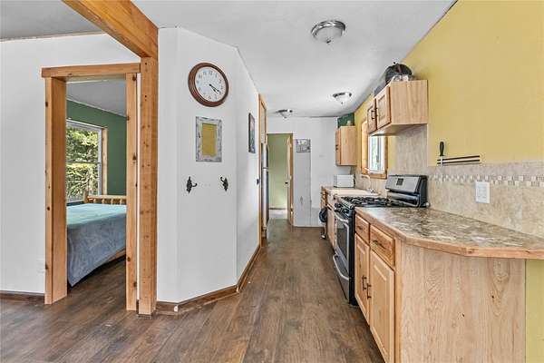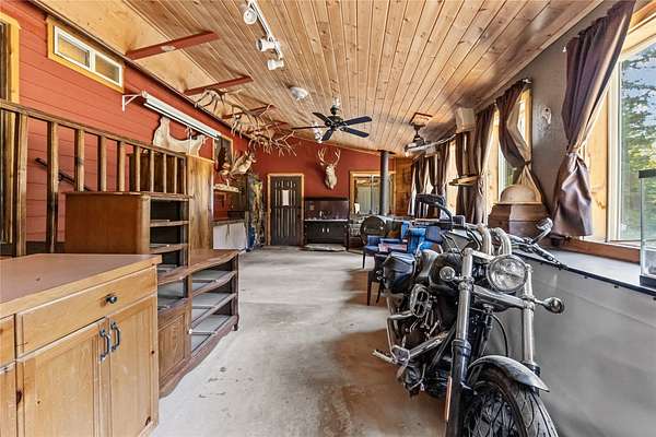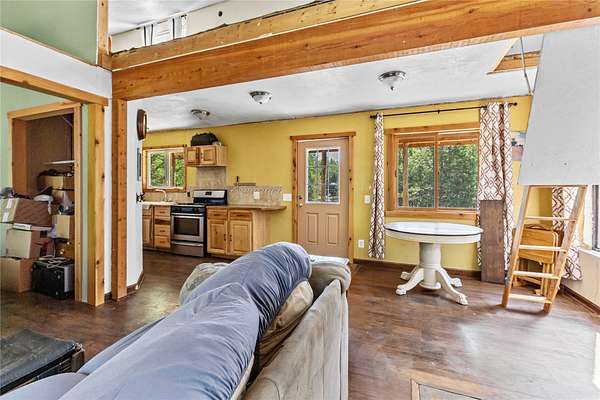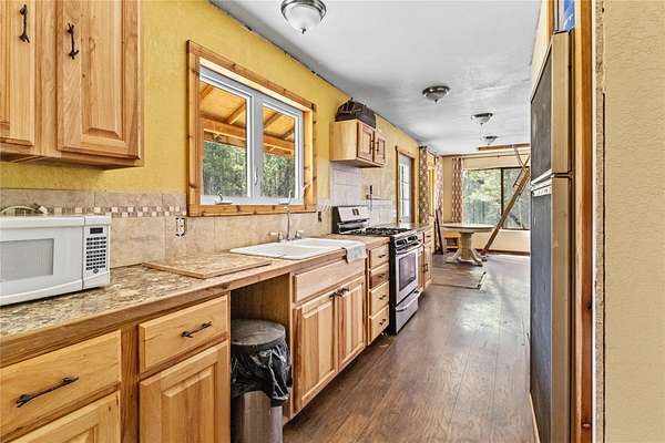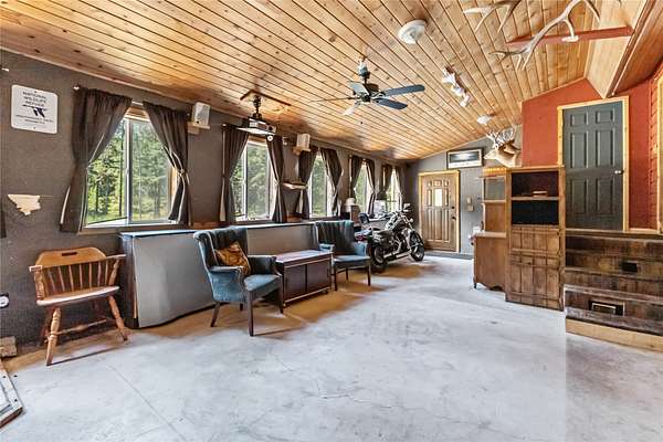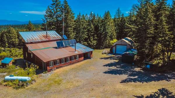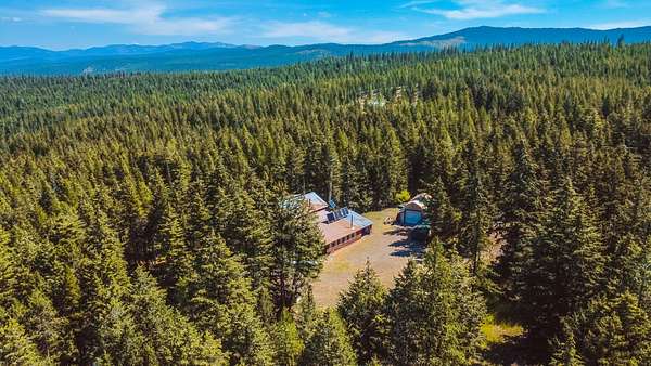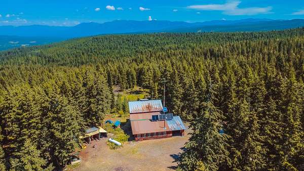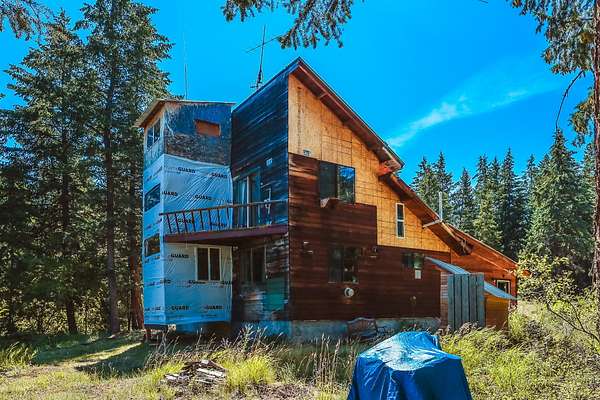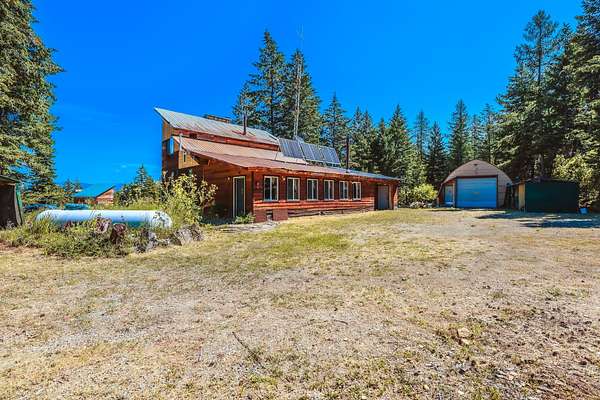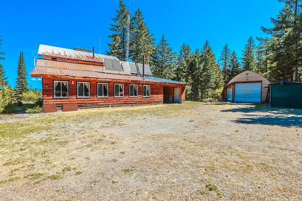 Nestled in the serene forest of Trego, Montana this charming off-grid cabin offers an incredible opportunity to immerse yourself in the natural beauty of the mountains. Situated at the center of 20 spacious acres and accessed by a private road, this property is a blank canvas waiting for your personal touch. Inside the main cabin, you'll find 1,776 square feet of living space thoughtfully designed to offer comfort and warmth. Enter through a spacious sunroom filled with oversized windows and a large corner fireplace for natural light and wood heat throughout the year. The main living area boasts bamboo floors, granite counter tops and pine ceilings for a rich finish. The main floor bedroom and bath make single story living easy and the two upstairs bedrooms provide room to spread out. Custom finishes include hand crafted cabinetry, a built in wall safe for valuables and the structure in place for private balconies. Outside, the detached shop is the perfect place for hobbies and projects and the attached garage makes winter parking a breeze. An additional carport at the driveway entrance provides protection for all your equipment. Set up to be completely off-grid, this is the easy way to enjoy self-sufficient living. The property is complete with a propane 'on-demand' hot water heater, propane wall heaters, propane range and refrigerator as well as a generator system with battery, inverter and solar support. The dry guest cabin is set up with one bedroom, a loft and kitchen/living area perfect for overflow guests. Tucked into the mature pines at the edge of the meadow for complete privacy it enjoys a separate entrance and is also wired, plumbed and ready for solar installation. This is more than a property, it is a peaceful lifestyle ready to help you to retreat! Call today for your private tour!