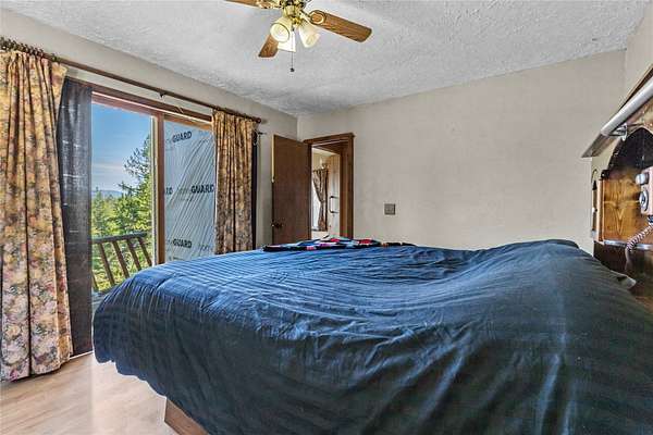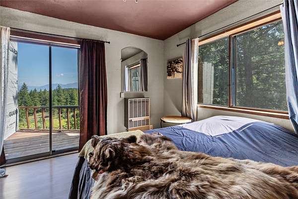 Take Hwy 93 S to Ant Flat Rd, then turn right. Stay on Ant Flat Rd for 2.8 mi, then turn right onto Trego Rd. In 1 mi, turn left onto Fortine Creek Rd for 6.9 mi. Go left onto Butcher Creek Rd, then cross the train tracks and pass Interbel substation on right after 1.4 mi. Stay left to stay on main road. Climb for 0.4 mi with a gravel pit on left. Road continues to the right, stay left at intersection. Continue up hill and around several s curves for .6 mi. Property is first driveway on left.