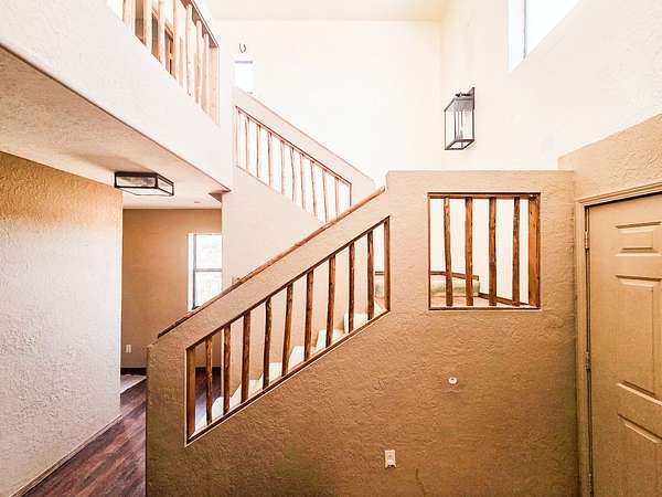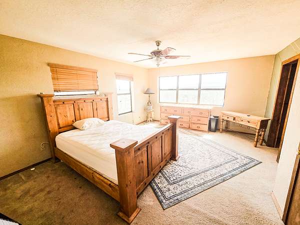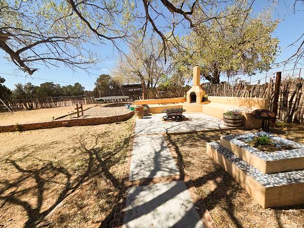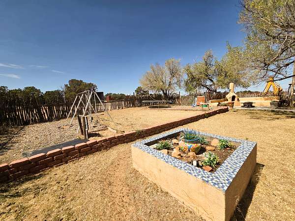 Expansive, fenced yard with a classic New Mexico high-desert setting