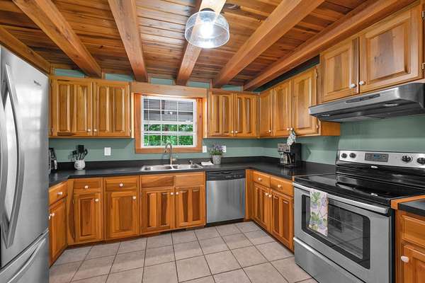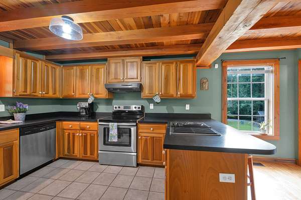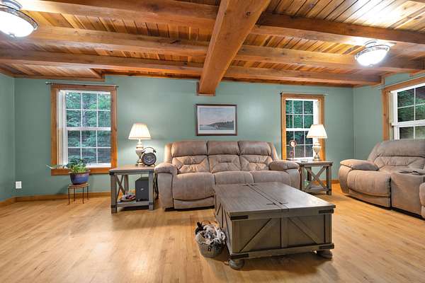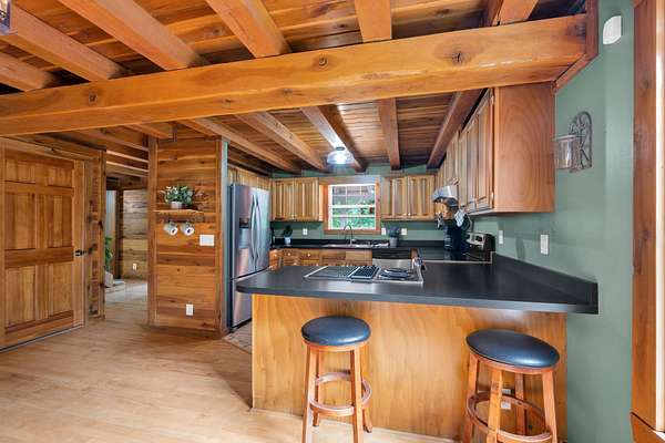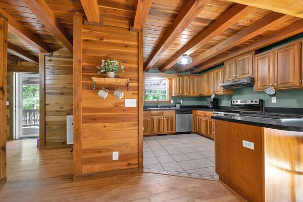 Est $3,351/moREDUCED!!! Private Rustic Home on 3 flat beautiful acres. 3. bedrooms 2 full baths. Hardwood floors, exposed beams, and kitchen with stainless steel appliances to remain, Basement has been finished so extra sq ft not listed on tax record. Home has a shooting range located in the back wooded area.