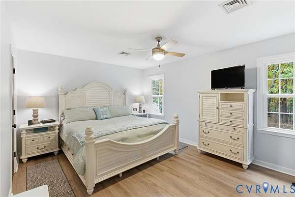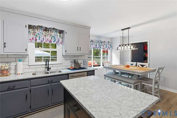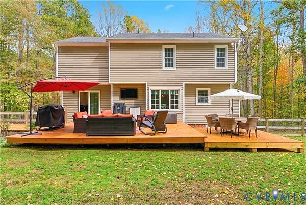 Beautifully Updated Home on 2 Private Acres in Powhatan! Welcome home to this move-in ready gem that perfectly blends modern updates with peaceful country living! Every detail has been thoughtfully refreshed-from the freshly painted interior (including doors) to luxury vinyl plank flooring throughout the entire home. The kitchen is a showstopper with new Frigidaire appliances (2025), a stylish two-tone cabinet design, ceramic tile backsplash, under-cabinet lighting, granite countertops, and a new island that conveys! Enjoy morning coffee or evening gatherings on the redone back deck, overlooking a fully fenced backyard with fresh mulch and two sheds. Or host a party inside with your very own Tiki bar & mini fridge! Both bathrooms have been updated with LVP flooring , new fixtures, and plumbing + granite in the downstairs half bath. Other highlights include new lighting and fans throughout, black hardware accents, a soft water system, high-speed Xfinity internet, and a dual HVAC system that has been serviced yearly. The roof (approx. 2015), freshly power-washed exterior, newly stained walkways and steps, and front and rear gutters add even more peace of mind. Whether you're entertaining, relaxing, or working from home, this one truly has it all-inside and out. Don't miss your chance to enjoy modern comfort on your own 2-acre retreat in beautiful Powhatan.
