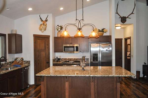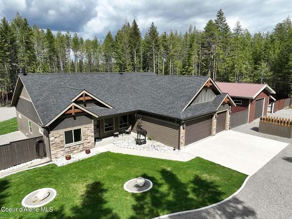 METICULOUSLY maintained, TURN-KEY acreage with a rare attention to detail found throughout the property, situated in arguably the most desirable area of North Idaho. LVP flooring throughout home - Granite countertops - Stainless appliances - Vaulted Ceiling - New Interior Paint - Insulated, heated shop with lighting, shelving and lean-to - Encapsulated and conditioned crawl space - Whole House Generac Generator - Kuma wood stove - 500 gallon propane tank - Landscaping with concrete edging - Huge fenced yard, 500-600 feet of fencing - Greenhouse - Raised garden beds/planters - Fruit trees (Peach, Apple, Cherry) - Raspberry bushes - Fire pit - Firewood storage shed - Pistol shooting area - 2000 gallon water storage tank plus roof sprinklers for fire protection/suppression - Extensive forest management including brush thinning and removal - Honeycomb blinds - Storm doors - Garage and shop cabinets/shelving - Closet shelving - TV antenna.