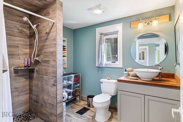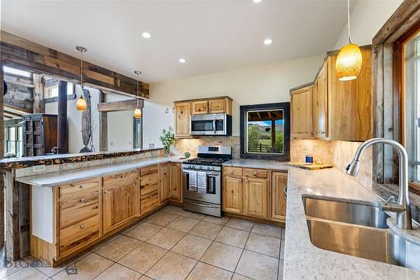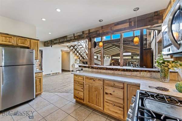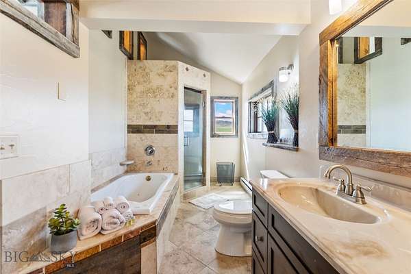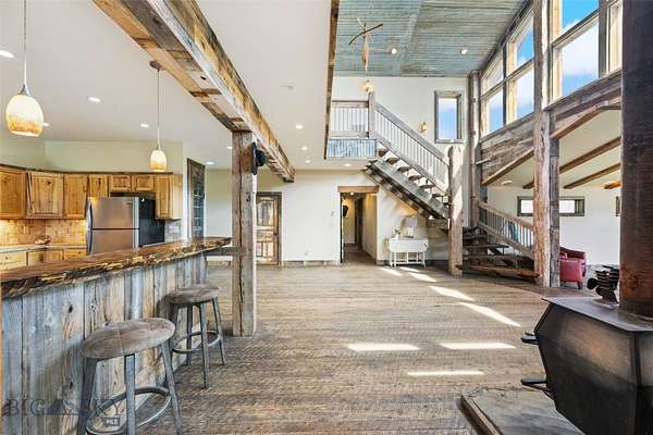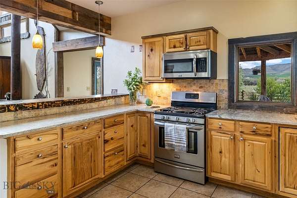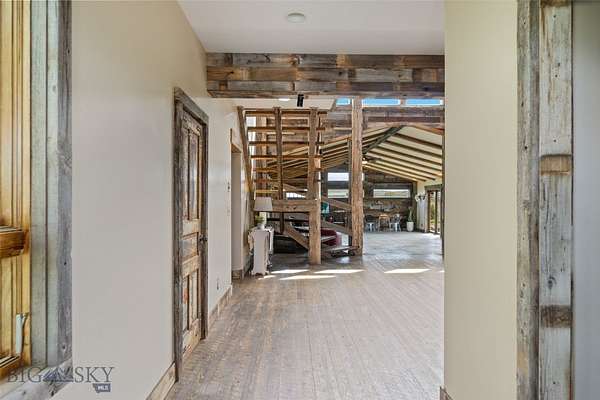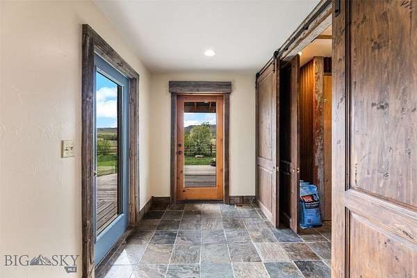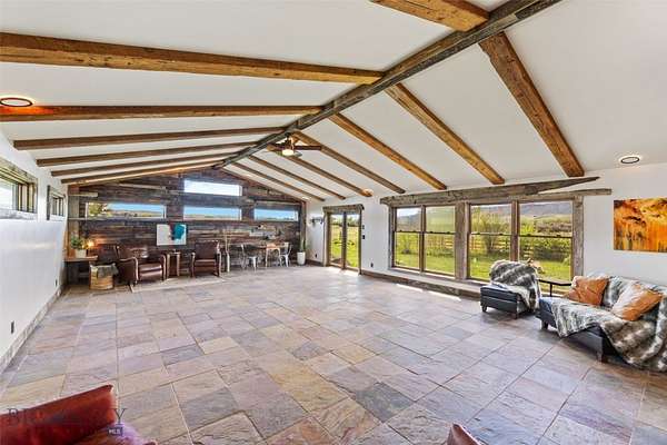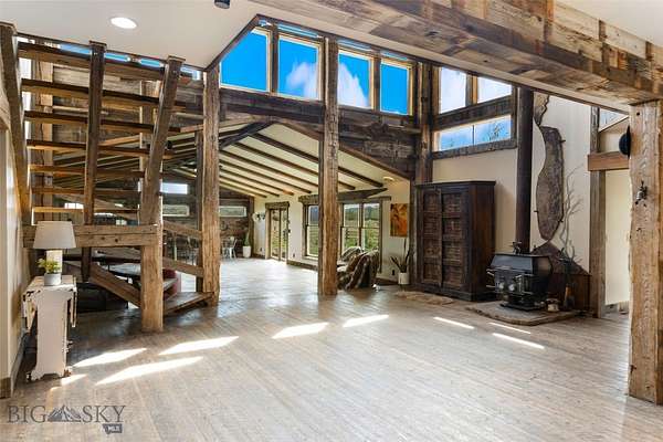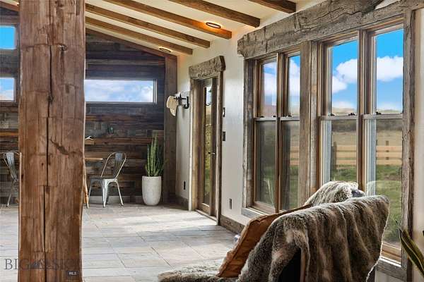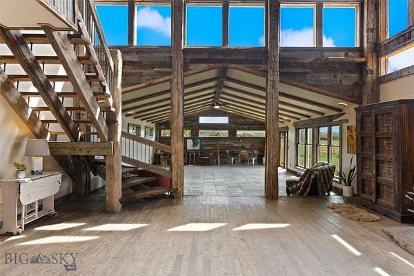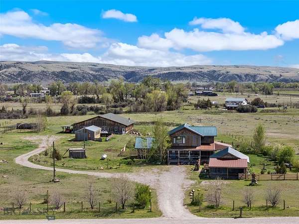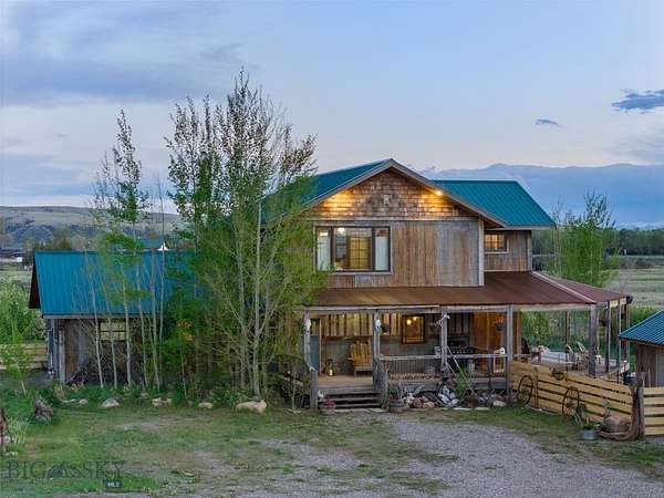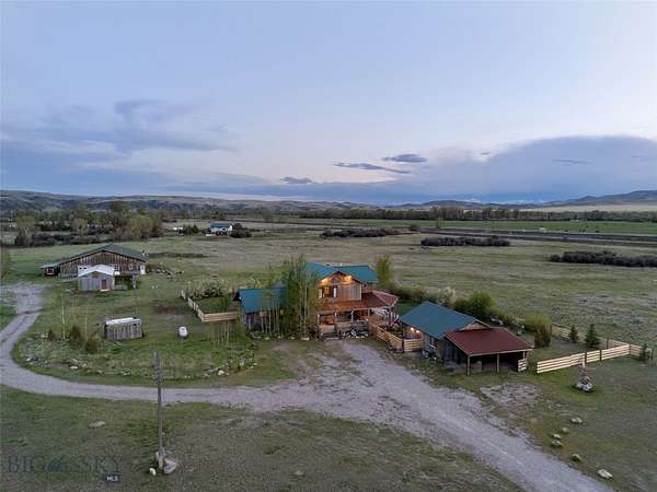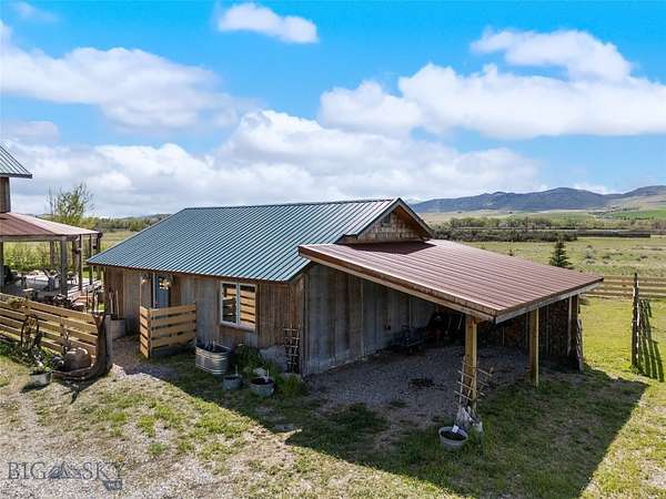 Serenity, function, and craftsmanship converge at 11111 Juniper Road in Three Forks, MT - an extraordinary, self-sustaining homestead just steps from the Missouri River and right near BLM and state land. Built by the same master craftsman behind the iconic round barn at Headwaters Ranch, this beautifully constructed estate is more than a home, it's a lifestyle. The main house stuns with aged timber beams, walls of windows that flood the space with natural light, and a seamless blend of tile, stone, and wood flooring throughout. The well-appointed kitchen is equipped with granite countertops and stainless steel appliances, perfect for preparing homegrown meals. Upstairs, the spacious lofted primary suite offers privacy and peace with its ensuite bath and walk-in closet. Enjoy access to the wraparound covered/open porch from several locations - your front-row seat to breathtaking Montana mountain views, endless skies, and the calming song of chirping birds. The massive, partially insulated shop offers room for tools, toys, and all-season projects, while the large greenhouse supports year-round growing. Enjoy sustainable living with your own chicken and duck coop, pig pen, and multiple raised garden beds and planters. The land is also ideal for horses, offering open space and a layout built for functionality. This property supports a true homestead lifestyle - quiet, self-sufficient, and grounded in nature - yet it's located just off the highway and along the local school bus route, making access seamless. The two-bedroom guest house, complete with kitchen, full bath, and living space, provides perfect quarters for extended family, guests, or additional rental income. Whether you're unwinding on the porch, tending to your hobbies, or soaking in the stillness of the countryside, 11111 Juniper Road invites you to slow down, breathe deeply, and live a Montana rooted lifestyle.