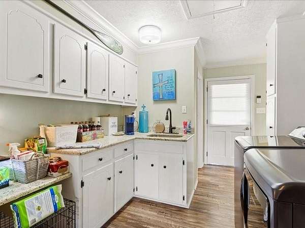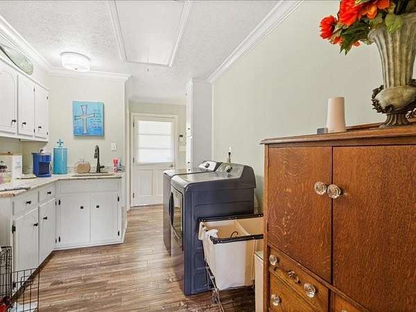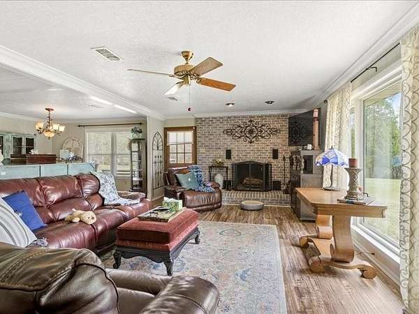 This charming 2,544 square foot home located at 11117 Highway 45 in Chunchula, AL sits on a spacious 3.72-acre lot, offering a perfect balance of privacy and tranquility. The property is surrounded by multiple sheds, providing ample storage space for tools, equipment, or hobbies, while still maintaining a sense of seclusion. There is also an RV pad to pull up your RV and hook it up with electricity, water and sewer. Tile features throughout all bathrooms as well. Kitchen and all bathrooms have been recently updated. Laundry room has a mud room and plenty of storage space. The home features a thoughtful layout with 4 bedrooms, 3 full bathrooms, and 1 half bath, offering plenty of space for family living or guests. The kitchen has been updated, making it a modern focal point of the home, ideal for cooking and entertaining. A recently added bedroom and full bath provide additional living space, perfect for an in-law suite, home office, or extra room for the family. Home also has crown molding throughout. Home features a 2-car garage attached to the home. 3 storge sheds and detached double garage in the back of the home. The covered back porch is a lovely spot to relax and enjoy the peaceful surroundings, whether you're sipping your morning coffee or hosting gatherings. The property's privacy, combined with the updated features of the home, makes this a great retreat or family home in a quiet country setting. New fields lines out in and pumped out 2024 Double pane windows Metal Roof 8 to 10 years Have Well on property Community water as well 2 car Garage A/C 2017 3 units and 2 replaced