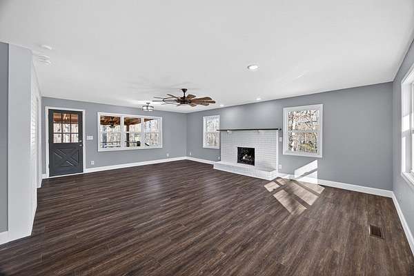 This brick home offers approximately 2,750 sq ft of heated living space, with 1,600 sq ft upstairs and 1,150 sq ft in a partially finished basement - giving you room to grow and flexibility for your needs. Upstairs features two bedrooms, including a spacious primary suite with a walk-in shower and private bath. The second bedroom has its own attached half bath. The living room is warm and inviting with a gas fireplace. Recent updates include new flooring, cabinets, countertops, stainless steel appliances, fresh paint, plus a new roof, HVAC, and windows in 2021. You'll love the designated dining room and additional space for a breakfast nook. Downstairs offers a third bedroom with a large walk-in closet, extra living space, and a chimney if you'd like to add a wood stove. Outside features a huge covered back porch, circle drive, chicken coop with run, and 1.8 unrestricted acres. Located 20 minutes to Crossville and 45 minutes to Cookeville. Buyer to verify all information.
