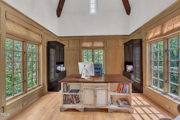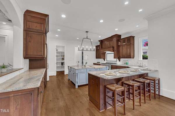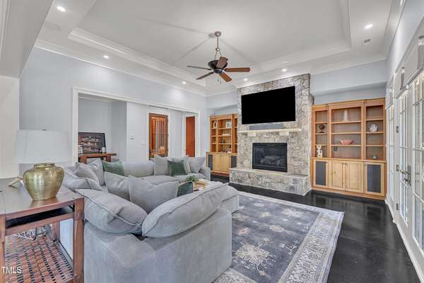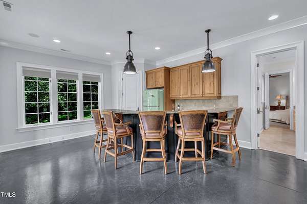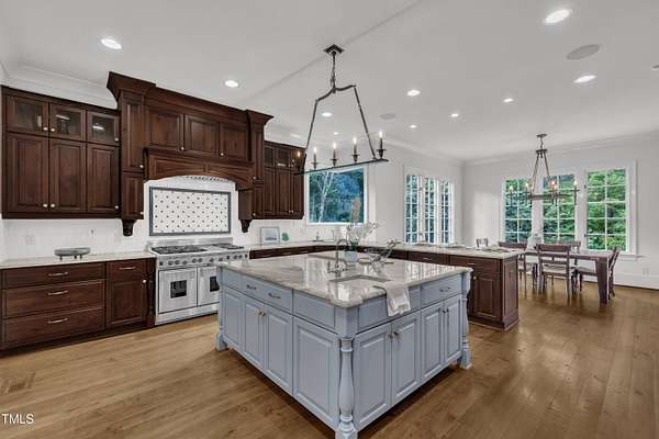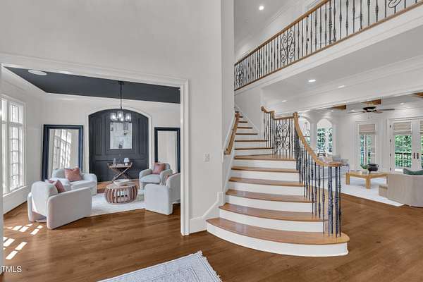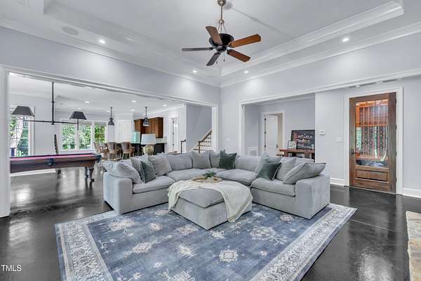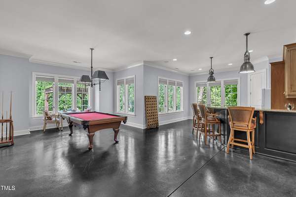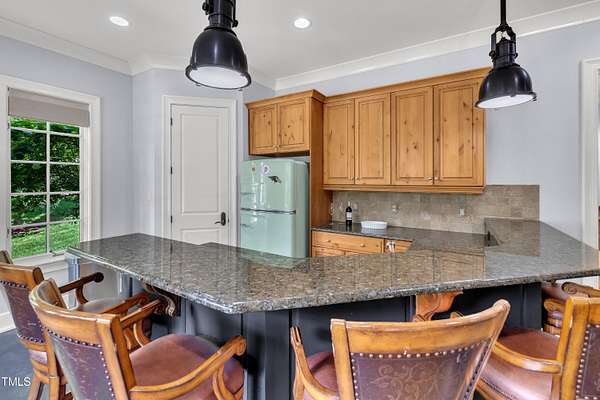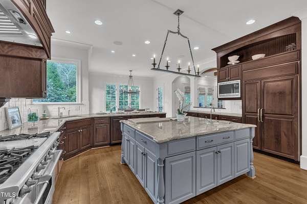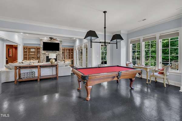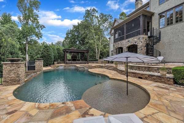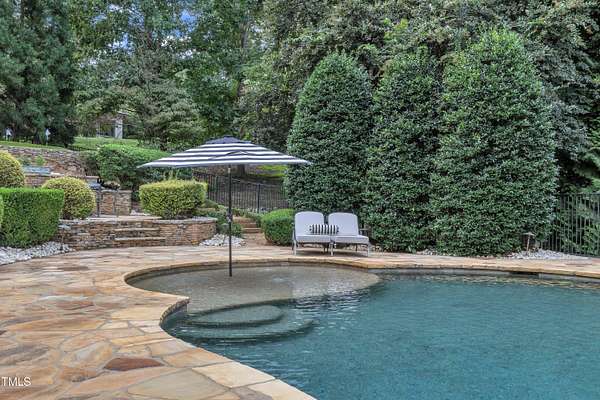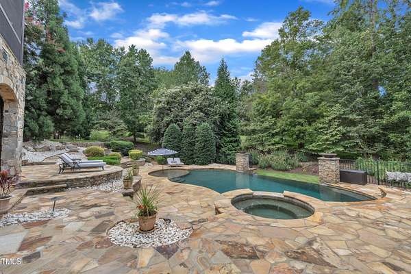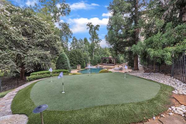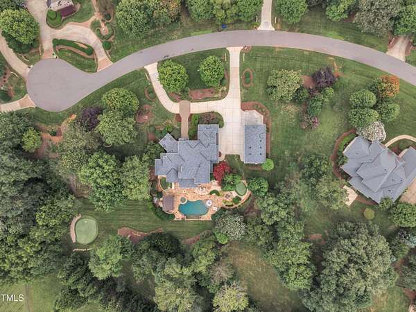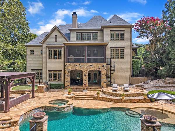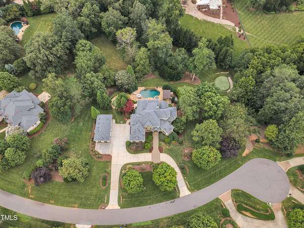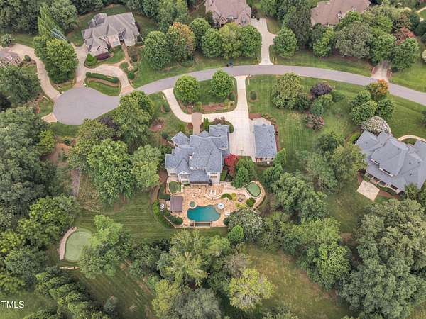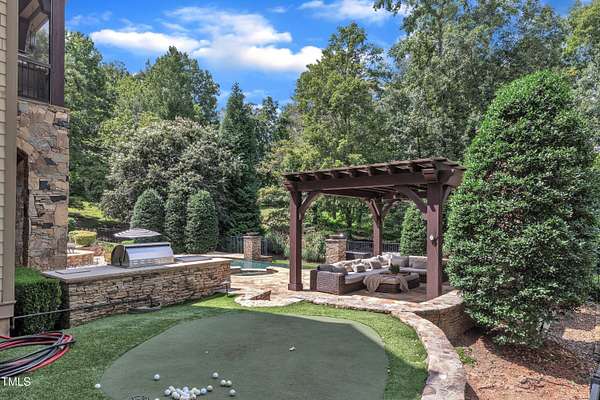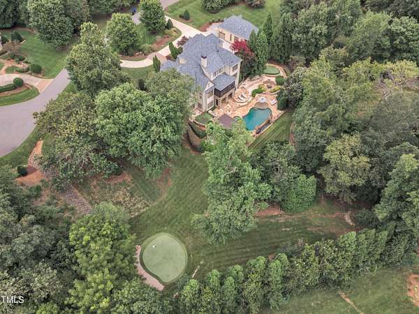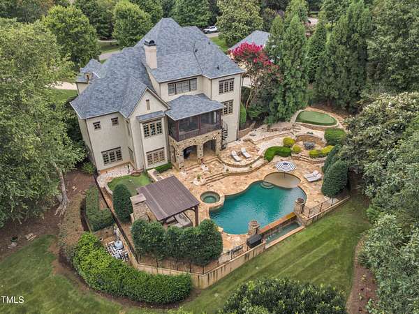 Luxury Estate in Prestigious North Raleigh. Resort-Style Living on 1.79 Acres. Welcome to this exceptional custom-built estate by Sundance Signature Homes. Completed in 2006, this home is perfectly situated on a private, 1.79-acre lot in one of North Raleigh's most sought-after neighborhoods. You will find this home to be the ultimate in luxury, comfort, and versatility-designed for refined living and effortless entertaining. 5-bedroom, 5 full bath, 2 half bath, 4 car garage space Inside, you'll find a thoughtfully designed floor plan with premium finishes throughout. The gourmet kitchen is a chef's dream, featuring a Wolf gas range, Sub-Zero refrigerator, granite countertops and elegant cabinetry. A spacious home theater and a fully finished basement-complete with a bedroom, kitchen, and full bath-make this home ideal for multigenerational living or hosting guests. The outdoor space is a true oasis, featuring an infinity-edge pool with hot tub added in 2010, custom putting green, and an inviting covered sitting area with fireplace. Don't forget outside the fenced in area is large space with unlimited potential, currently used as a driving range. Entertain effortlessly with a Wolf outdoor grill and plenty of patio space for lounging. A standout feature is the detached garage which was added/permitted in 2016, offering over 1200 square feet of heated and cooled space. This space is perfect for a home gym, studio, or private retreat. It includes a half bath and upstairs sitting area- for quiet work or relaxation. This one-of-a-kind estate combines privacy, luxury, and convenience in a premier North Raleigh location. A rare opportunity for those seeking a high-end lifestyle with every detail considered.