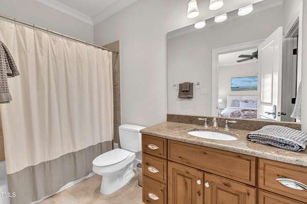 - Bathtub Only, Bathtub/Shower Combination, Bookcases, Breakfast Bar, Ceiling Fan(s), Eat-In Kitchen, Entrance Foyer, Granite Counters, Kitchen Island, Primary Downstairs, Recessed Lighting, Smooth Ceilings