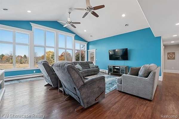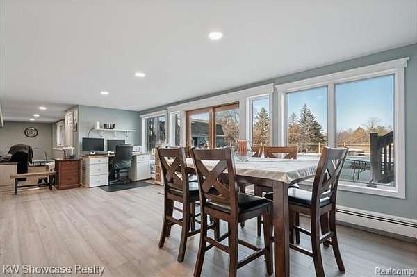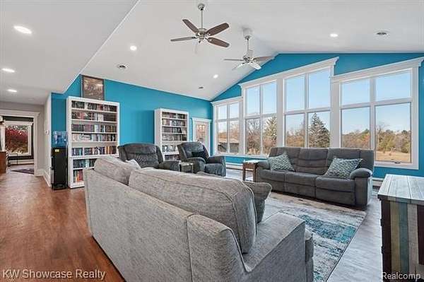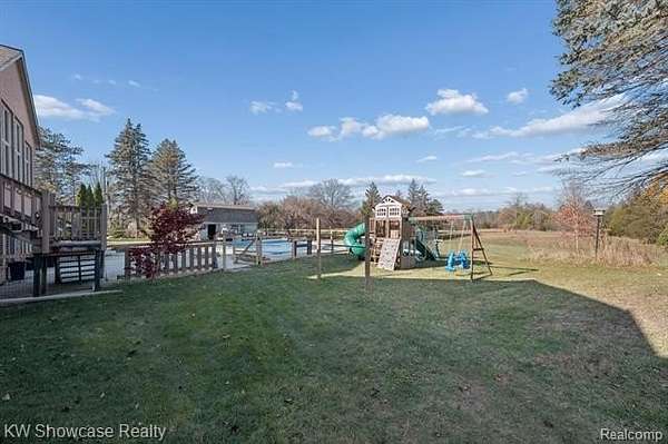 Now is your chance to own a beautiful Ranch with 5 spacious bedrooms and 5 baths that has stunning views of the rolling acres lined with trees and fruit bearing trees. At the back of the property you will enjoy the views of the two ponds and Swartz Creek. There are two master suites that enjoy the views of the almost 5 acres and that have access to the decks. The basement is finished and has the perfect setup for an in-laws quarters or multi-gen living. There is first floor laundry that doubles as the fourth full bath on the main level with a heated tile floor; second laundry hookup is located in the basement. The home boasts two kitchens that are perfect for hosting family and friends along with a large living room with a wall of windows perfect for gazing at the picturesque acres. Basement has walk out that takes you right to the pool to enjoy Michigan's summer days. The home has had many updates that includes: 2023, new boiler, carpet, water system, basement remodel, gutters, pool liner and safety cover, all new appliances, outlets and switches, ceiling fans, and lights. 2024 new air conditioner. In 2025 the pool heater, fence, and landscaping was updated. You do not want to miss this opportunity to own a stunning home.