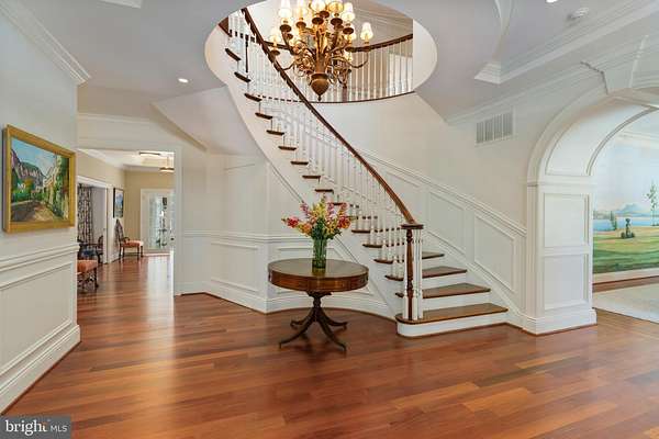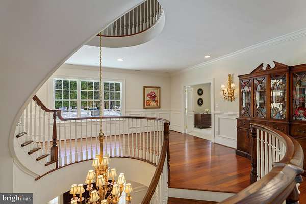 - Additional Stairway, Air Filter System, Attic, Bar, Butlers Pantry, Carpet, Chair Railings, Crown Moldings, Curved Staircase, Formal/Separate Dining Room, Gourmet Kitchen, Intercom, Island Kitchen, Pantry, Primary Bath(s), Recessed Lighting, Soaking Tub Bathroom, Table Space Kitchen, Traditional Floor Plan, Upgraded Countertops, Wainscotting, Walk-In Closet(s), Water Treat System, Wet/Dry Bar, Window Treatments, Wood Floors