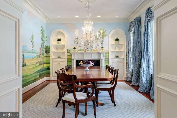 This extraordinary Georgian-inspired estate is a masterclass in refined living-where timeless elegance meets modern luxury to create a private sanctuary designed for both grand entertaining and intimate everyday moments. Encompassing more than 12,000 square feet, every detail of this meticulously crafted residence reflects the vision and care of its original owners. Nestled on 5.8 acres within the prestigious gated community of Westwicke and backing to protected forest, the setting offers rare seclusion and serenity. A circular drive leads to a stately portico, unveiling a breathtaking three-story foyer crowned by a sweeping, curved staircase that sets the tone for the home's architectural drama. Exceptional craftsmanship defines the interiors, from rich Santos Mahogany floors to intricate millwork and striking coffered and barrel ceilings. Formal living spaces exude sophistication, including an elegant dining room with a mantled fireplace and a hand-painted mural by artist Charlie Macsherry-an unforgettable backdrop for gatherings. At the heart of the home, the gourmet kitchen is both stunning and functional, anchored by an expansive U-shaped island, Blue Pearl granite, and a seamless blend of stainless and paneled appliances. Sunlight pours into the breakfast area, which opens to a balcony with an outdoor grill-perfect for effortless indoor-outdoor living. The adjacent family room, with its coffered ceiling and stone fireplace, flows beautifully into a sunroom and a richly appointed media room with custom built-ins. Designed for entertaining, the home offers a glamorous billiards room with a decorative tin ceiling and a fully equipped bar-ideal for hosting in style. Upstairs, five generously sized bedrooms include a luxurious primary suite complete with a gas fireplace, spa-inspired bath with steam shower and soaking tub, and a dedicated dressing room. Secondary bedrooms feature custom built-ins and well-designed shared baths. A thoughtfully designed north wing enhances everyday living with a mudroom, playroom, and a whimsical indoor slide connecting to the lower level. Above, a private guest suite, full bath, and home office provide flexibility and comfort. The lower level transforms leisure into an experience, featuring a full stage, projection screen for cinematic evenings, a half-court sport court, and an arcade-creating the ultimate entertainment destination. Blending classic architecture with exceptional amenities, this one-of-a-kind residence offers a lifestyle of unparalleled comfort, privacy, and distinction.