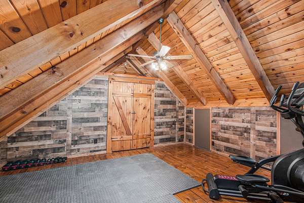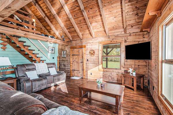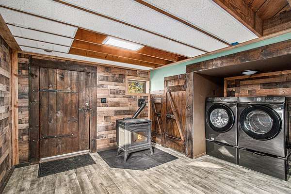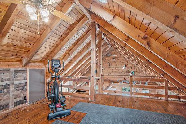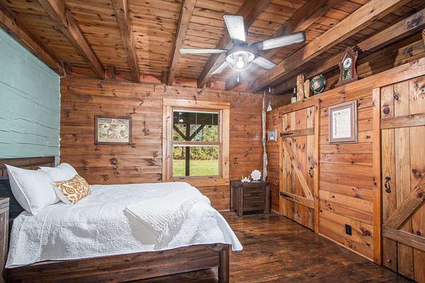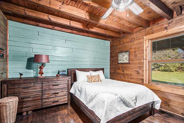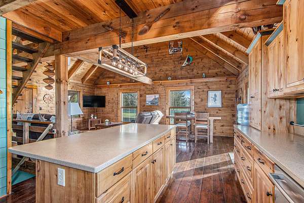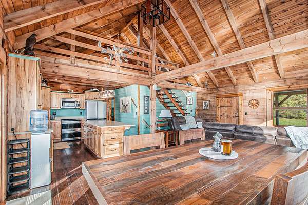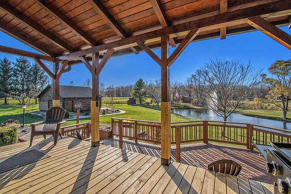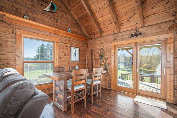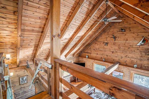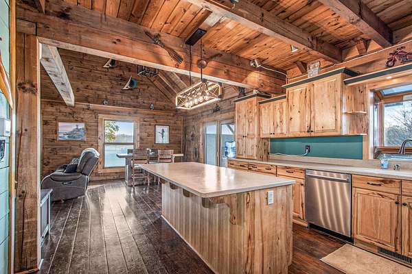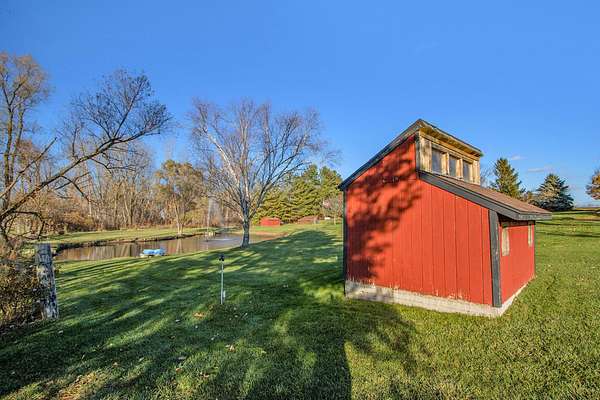 Spectacular Log Home on 2.45 Acres with Private Stocked Pond! This beautiful log home offers the perfect blend of rustic charm and modern comfort. Set on 2.45 serene acres, the property includes a private stocked pond with bluegill, bass, and turtles-an ideal retreat for nature lovers. Offering 2-3 bedrooms and 2 full baths, this home is move-in ready. The home features a walkout lower level, loft, and numerous recent improvements including a NEW furnace/AC, NEW pellet stove, complete basement remodel, NEW stacked-stone siding, and more. Inside, you'll love the warm, inviting atmosphere with a great room that flows seamlessly into the living room, highlighted by high ceilings and exposed wood beams. The kitchen showcases hickory cabinetry, solid-surface countertops, and all appliances included. The main-floor primary bedroom provides convenience, while the loft-with abundant closet space-serves as a spacious second bedroom. The walkout level adds fantastic additional living space with with a cozy family room featuring a pellet stove, an office, a potential third bedroom with electric gas-log fireplace, full bath, and laundry area. Exterior features include a 2-car detached garage, beautiful landscaping with 3 apple trees and 4 grapevines, a storage shed, generous chicken coop, and lean-to for firewood. Seller is also including the pond fountain, paddle boat, dock, and a brand-new washer and dryer. This log home is truly a must-see!