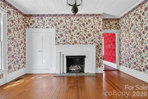 The Historic Edgewood Farmhouse is one of the last antebellum plantation homes still standing in Mecklenburg County. Carefully preserved, this circa 1840 farmhouse is the embodiment of the transitional Federal/Greek Revival style. It was built for Robert Davidson Alexander and his wife, Abigail Bain Caldwell Alexander, two prominent pioneer families in Mecklenburg County. Situated on 2.5 acres in a historic viewshed, this amazing property is conveniently located near 485, schools, shops and restaurants. The main house is your typical 4x4 with a center hall and a Kitchen addition; the rear porch was enclosed into a cozy sunroom. Interior features include heart pine and oak floors, 8 fireplaces with historic mantlepieces, high ceilings, beautiful millwork and historic architectural details. There is an original log home, built circa 1830, on the property, which includes a full bathroom and an exterior 1/2 bath. Endless opportunities! This historic landmark is an exceptional canvas poised to bring your design vision to life! The property zoning permits some commercial uses for farm and agriculture as well. Priced below recent appraisal!